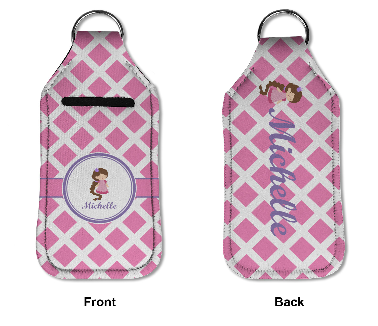 Each hand sanitizer holder comes with its own empty travel-sized, refillable hand sanitizer sure to fit snug in your customized sanitizer case! Our hand sanitizer cases are a durable, yet soft neoprene material sure to last any daily activities or travel agenda. Customize and personalize a hand sanitizer bottle holder with one of our two sizes - small (4.25" x 2.25") or large (5.5" x 2.5"). Each travel sanitizer holder comes with a keyring for attachment on bags, keys, or more!