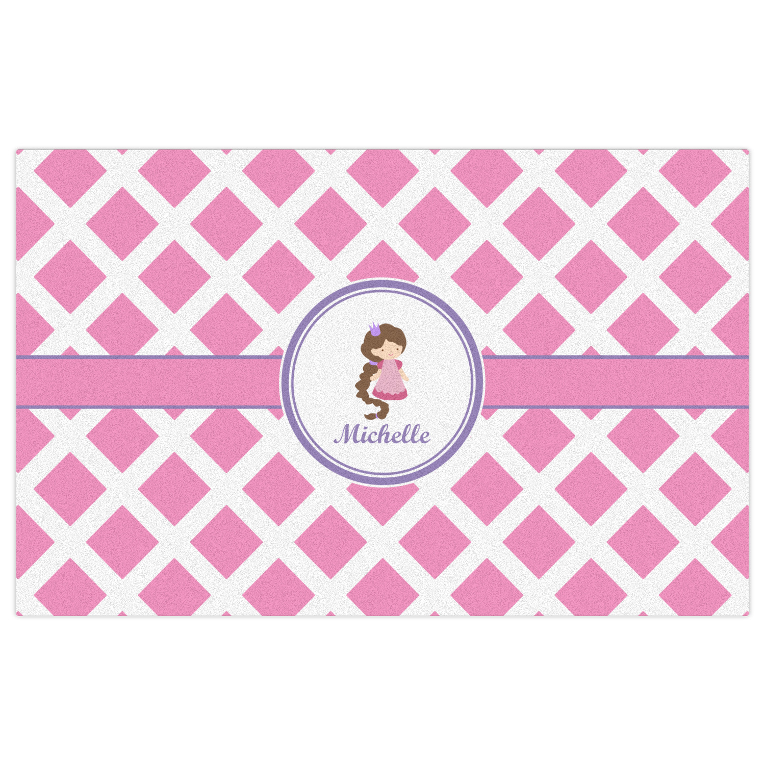 This princess themed print full of little girl pink and purple makes the statement that your little girl is The Princess. This print features every princess's dream full of castles, crowns, her very own prince frog to kiss, and lots of hearts fluttering about. The bottom of the design is a coordinating pink and white diamond pattern.
