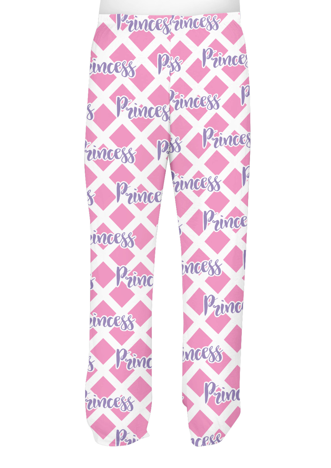 This princess themed print full of little girl pink and purple makes the statement that your little girl is The Princess. This print features every princess's dream full of castles, crowns, her very own prince frog to kiss, and lots of hearts fluttering about. The bottom of the design is a coordinating pink and white diamond pattern.