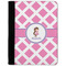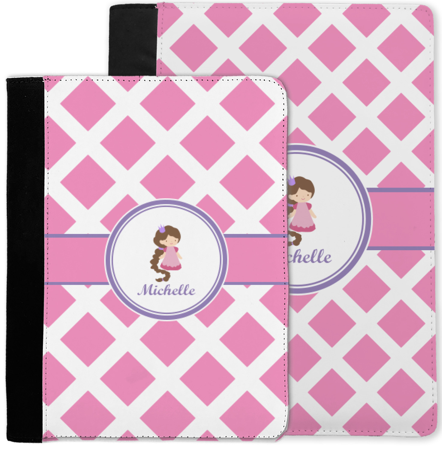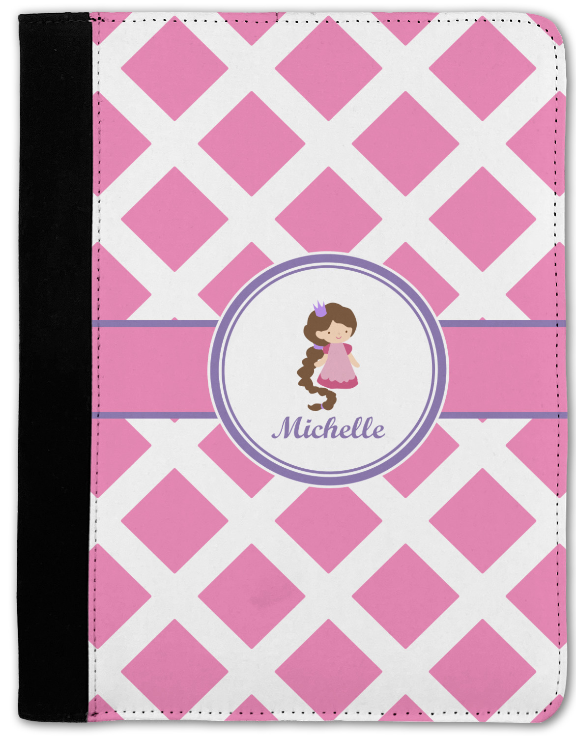 These personalized padfolios are made from a black, polyester microfiber and features a standard, 50-page notepad. However, these black padfolios can accommodate a pad with up to 100 pages. This model also features a slot pocket for any loose sheets of paper, small pockets for business cards, and an elastic band to secure a pen. We print your personalization across the front of this notepad portfolio in bright, vibrant color. These padfolios come in 2 sizes, Medium - approximately 10.25" x 8" for 5" x 8" paper and Large - approximately 12.5" x 8.5" for 8.5" x 11" paper.