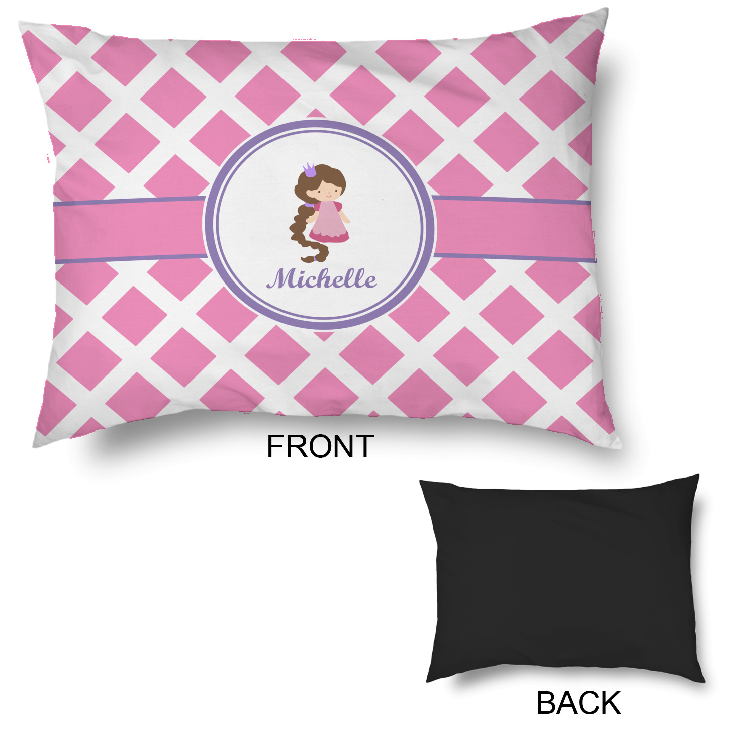 This princess themed print full of little girl pink and purple makes the statement that your little girl is The Princess. This print features every princess's dream full of castles, crowns, her very own prince frog to kiss, and lots of hearts fluttering about. The bottom of the design is a coordinating pink and white diamond pattern.