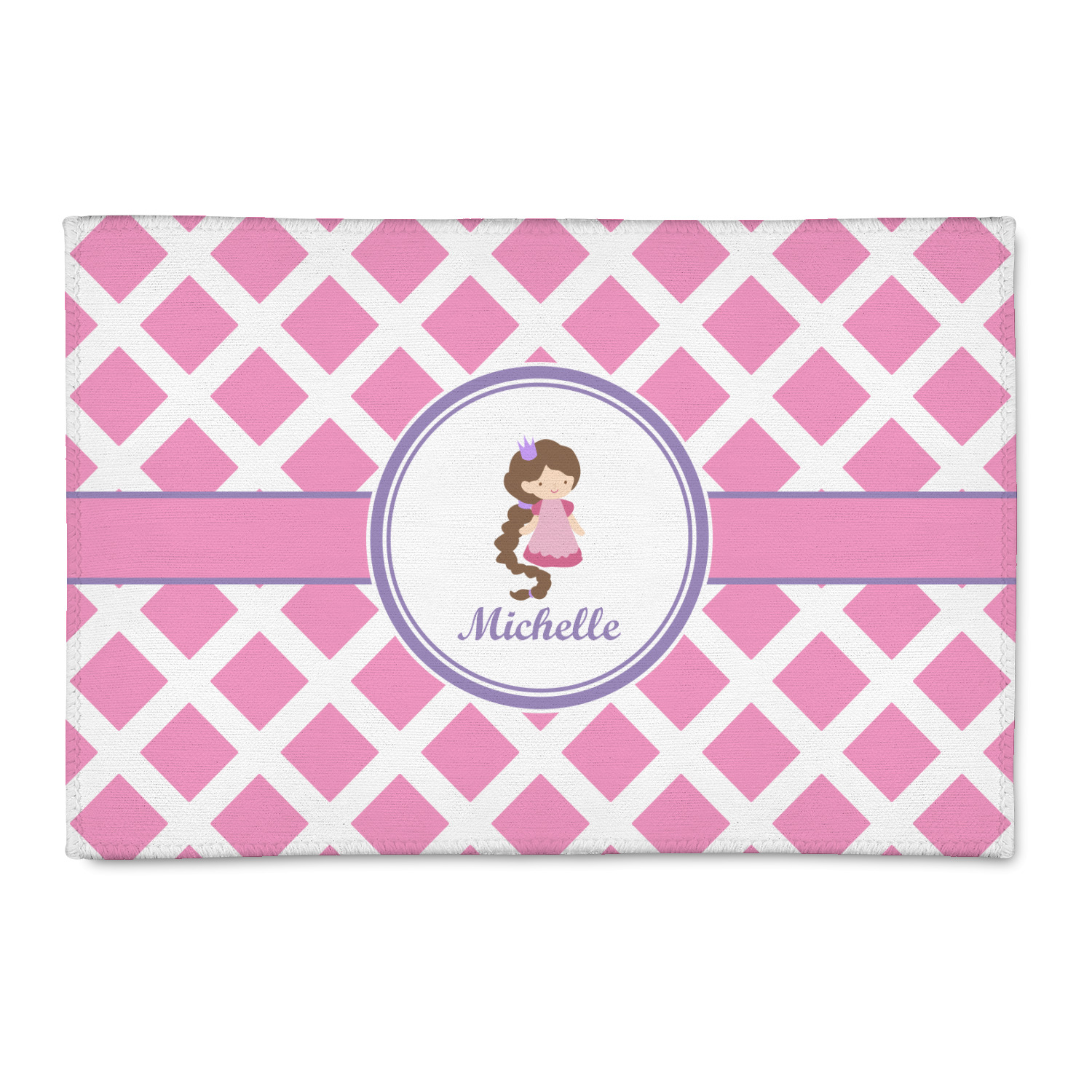 This princess themed print full of little girl pink and purple makes the statement that your little girl is The Princess. This print features every princess's dream full of castles, crowns, her very own prince frog to kiss, and lots of hearts fluttering about. The bottom of the design is a coordinating pink and white diamond pattern.