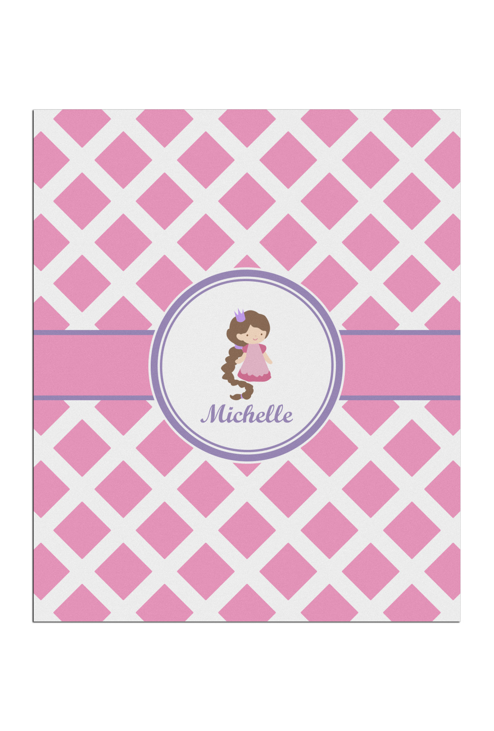 This princess themed print full of little girl pink and purple makes the statement that your little girl is The Princess. This print features every princess's dream full of castles, crowns, her very own prince frog to kiss, and lots of hearts fluttering about. The bottom of the design is a coordinating pink and white diamond pattern.
