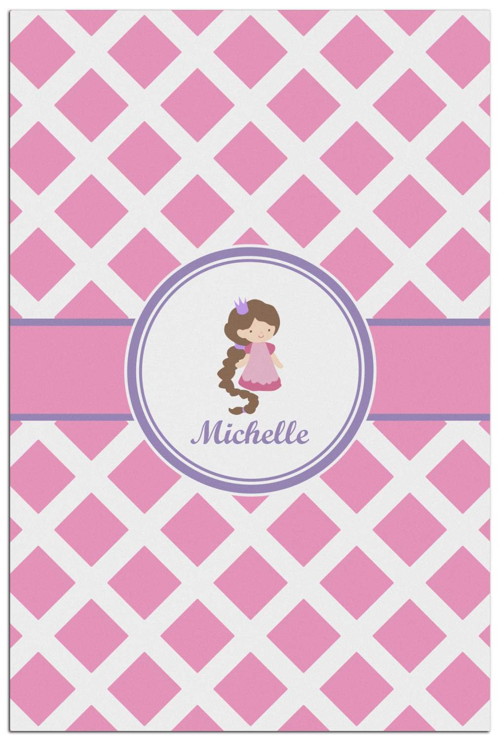 This princess themed print full of little girl pink and purple makes the statement that your little girl is The Princess. This print features every princess's dream full of castles, crowns, her very own prince frog to kiss, and lots of hearts fluttering about. The bottom of the design is a coordinating pink and white diamond pattern.