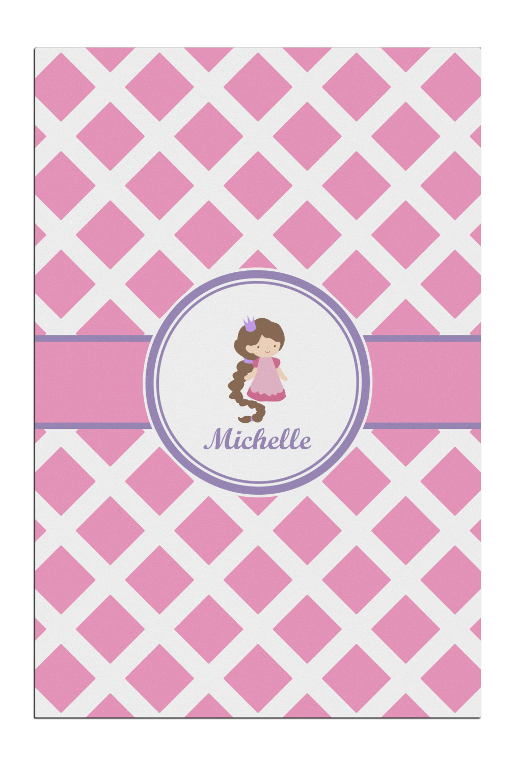 This princess themed print full of little girl pink and purple makes the statement that your little girl is The Princess. This print features every princess's dream full of castles, crowns, her very own prince frog to kiss, and lots of hearts fluttering about. The bottom of the design is a coordinating pink and white diamond pattern.