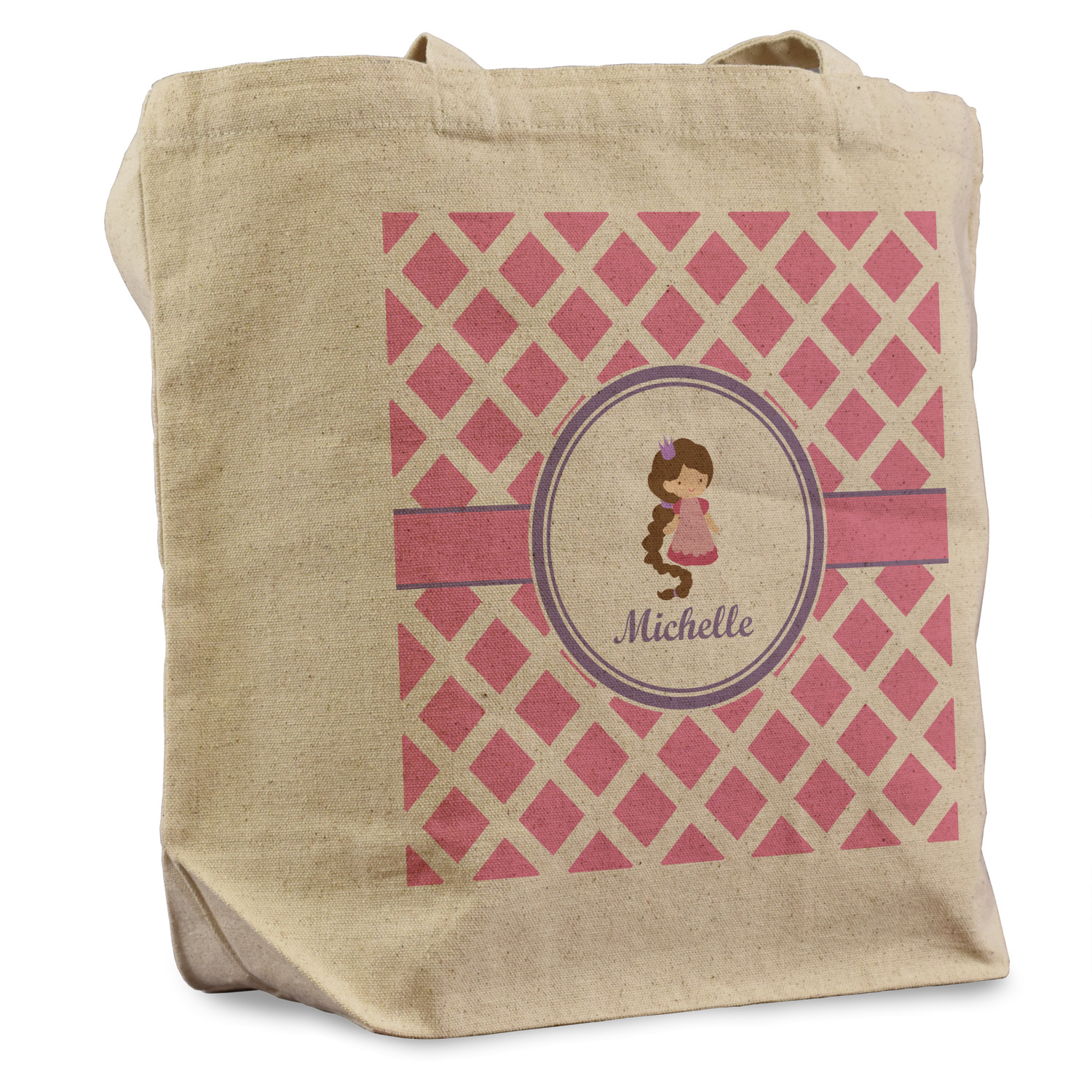 This princess themed print full of little girl pink and purple makes the statement that your little girl is The Princess. This print features every princess's dream full of castles, crowns, her very own prince frog to kiss, and lots of hearts fluttering about. The bottom of the design is a coordinating pink and white diamond pattern.