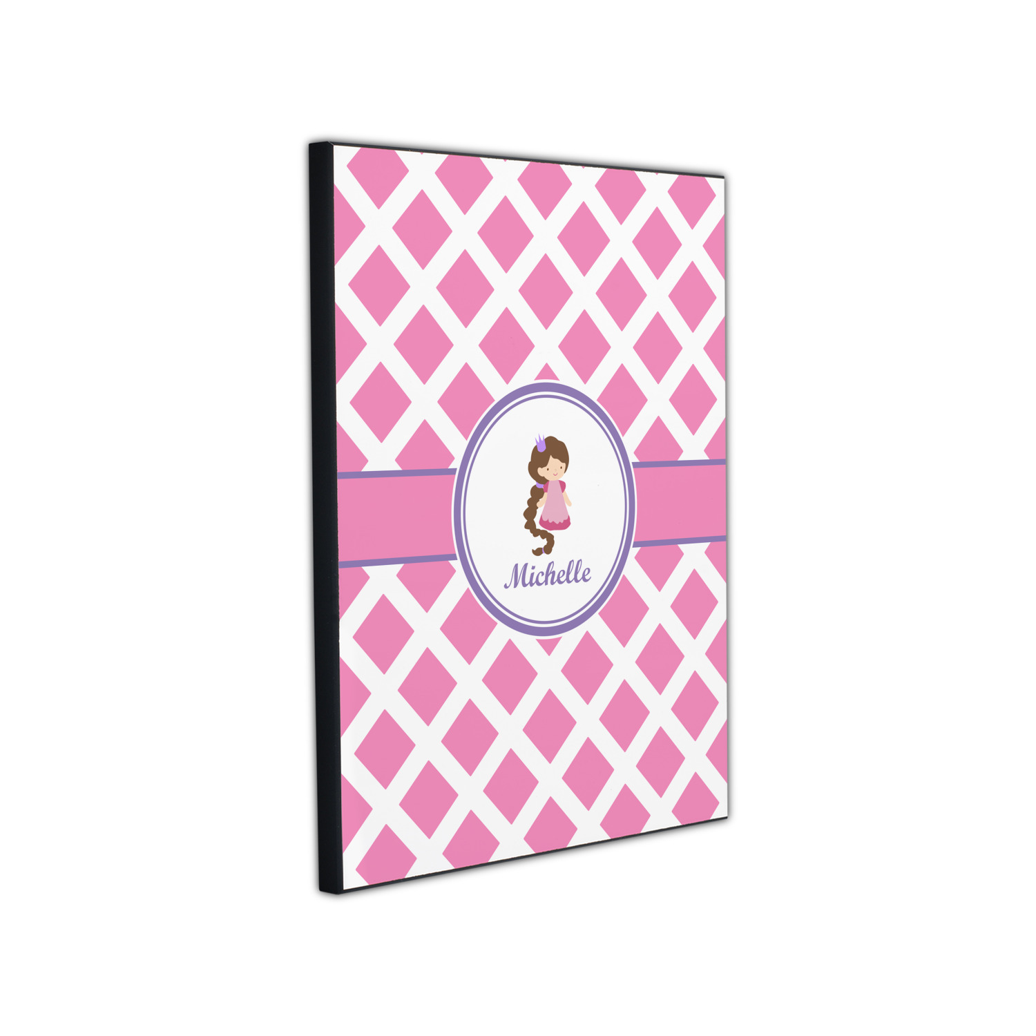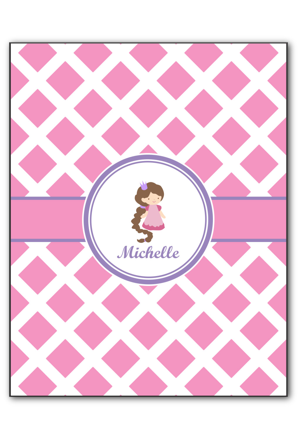 This princess themed print full of little girl pink and purple makes the statement that your little girl is The Princess. This print features every princess's dream full of castles, crowns, her very own prince frog to kiss, and lots of hearts fluttering about. The bottom of the design is a coordinating pink and white diamond pattern.