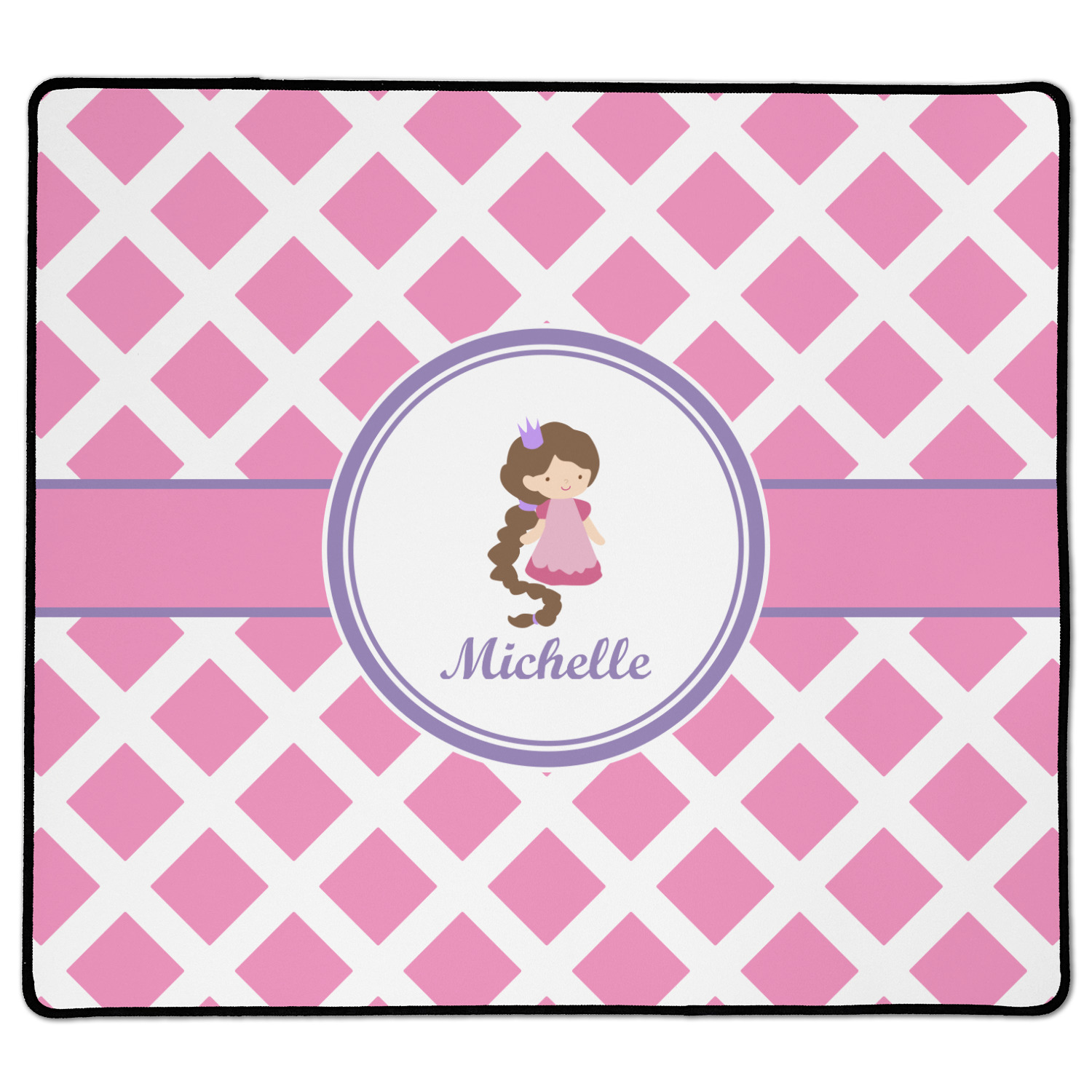 This princess themed print full of little girl pink and purple makes the statement that your little girl is The Princess. This print features every princess's dream full of castles, crowns, her very own prince frog to kiss, and lots of hearts fluttering about. The bottom of the design is a coordinating pink and white diamond pattern.