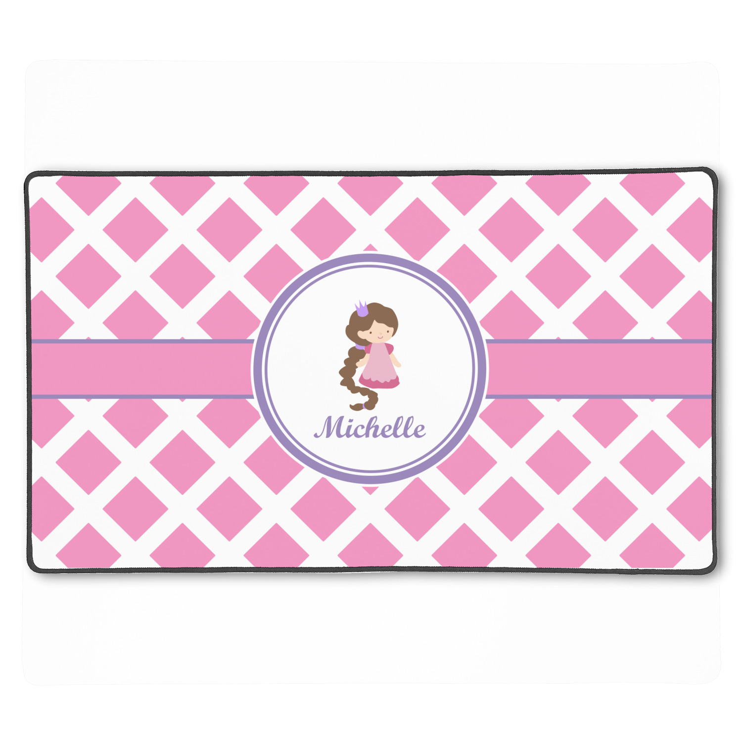 This princess themed print full of little girl pink and purple makes the statement that your little girl is The Princess. This print features every princess's dream full of castles, crowns, her very own prince frog to kiss, and lots of hearts fluttering about. The bottom of the design is a coordinating pink and white diamond pattern.