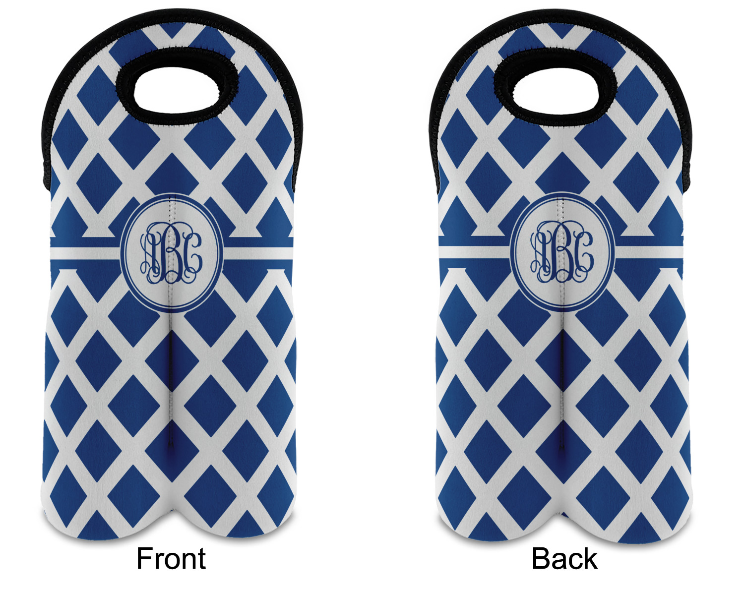 These tote bags are insulated to keep the bottles cold and have a stitched separation down the middle and double handles to keep the two bottles safe and secure during travels.