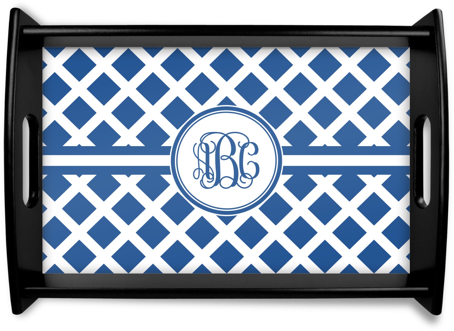 This serving tray with handles features square edges and two rounded sides, creating a very modern look. Each side is fabricated from a beautifully cut, natural wood. The bottom of the interior of the tray displays your customized design in bright, vibrant color. The tray is sold in both a black color and a natural wood look. Each variation of the wood serving tray has two sizes: Small, which is 14" x 10" x 2.25", and Large, which is 19.5" x 13.5" x 2.75".