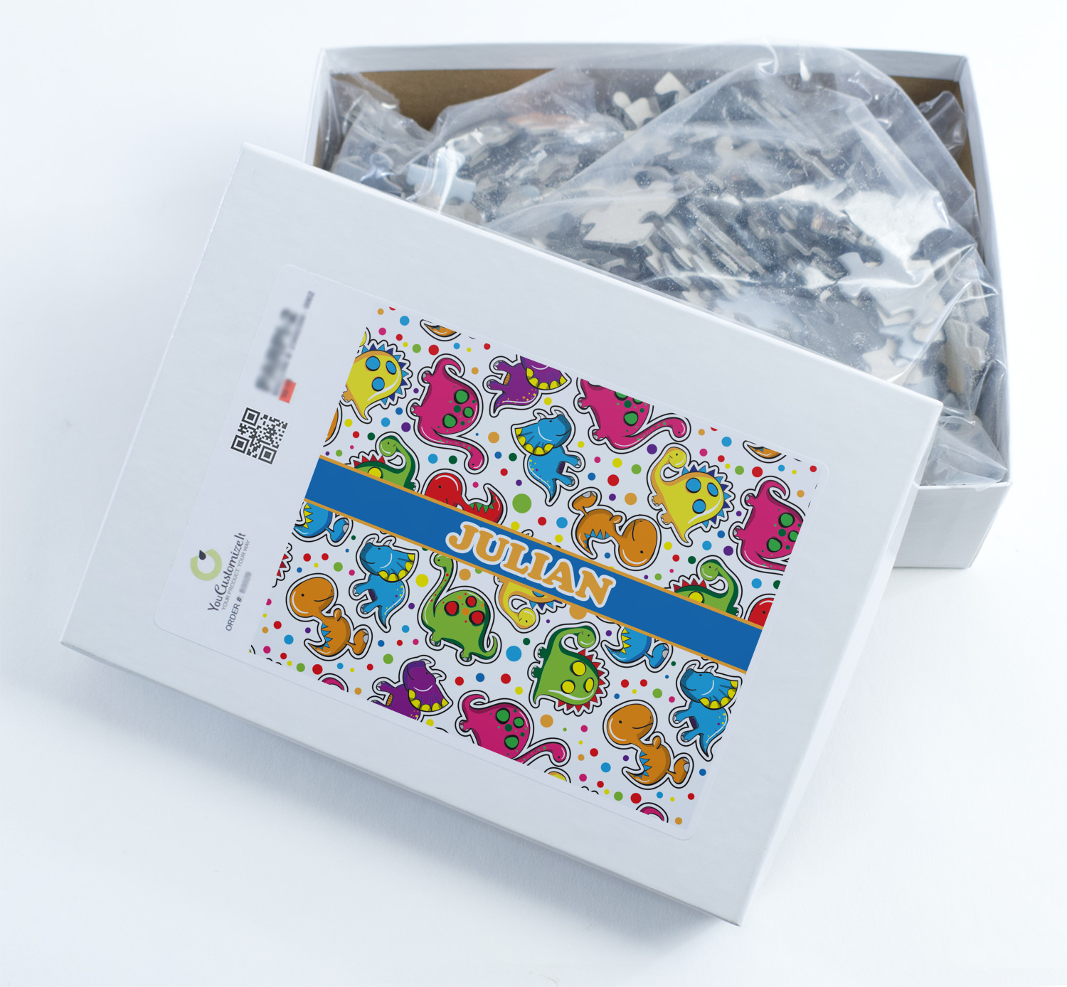 You can also upload your logo or art that you or your kids drew. To create more challenging jigsaw puzzles, you can create a pattern from with your logo or artwork. You can also add other elements such as text or personalization.