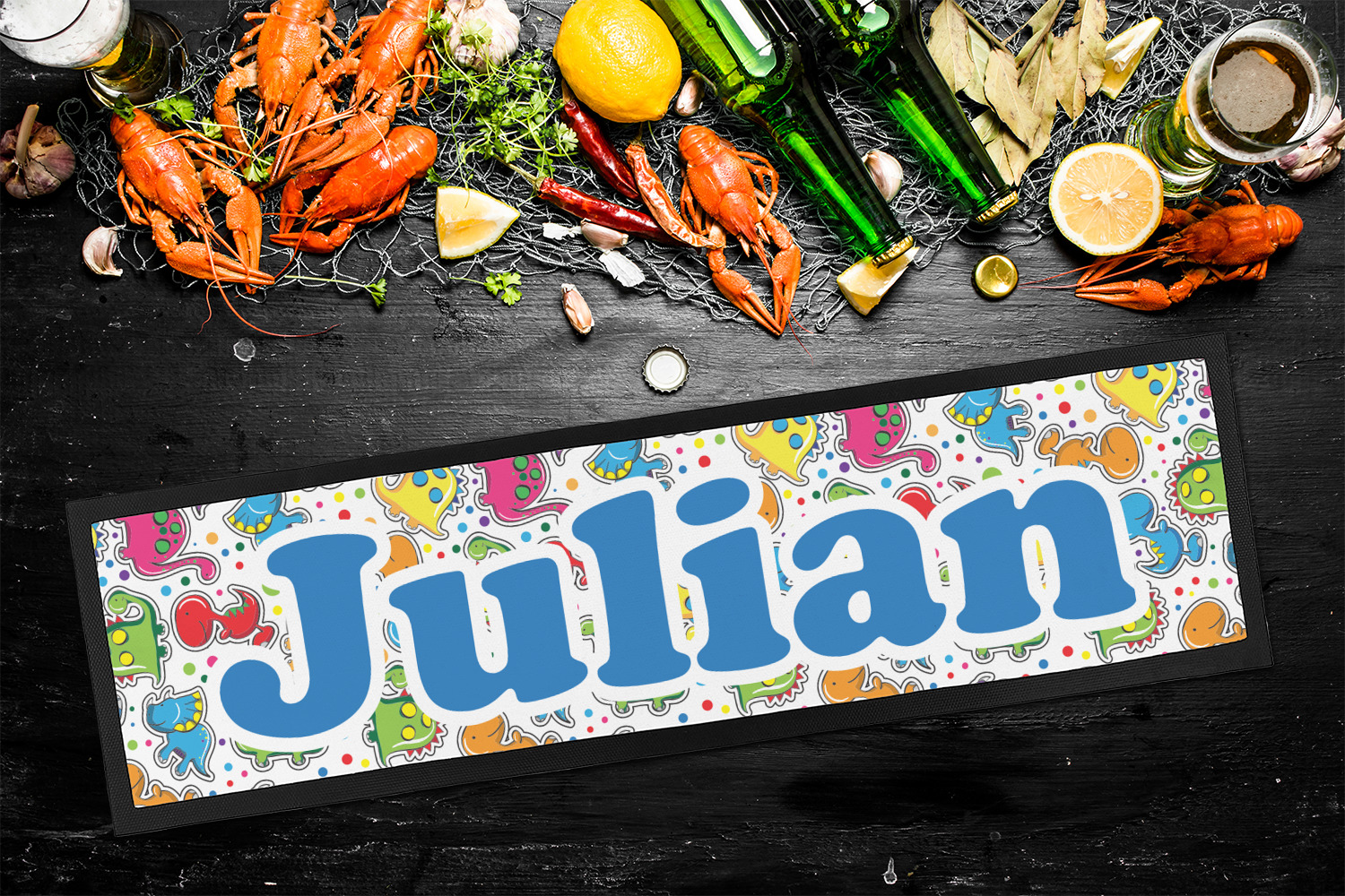 Colorful dinosaurs spring to life in this whimsical and comical versatile pattern. Set on a backdrop of multicolored polka dots these dinosaurs are sure to delight your little ones. Using bright colors of Blue, red, green, purple, yellow, and pink these dinosaurs are sure to stir up your little one's imagination in no time.