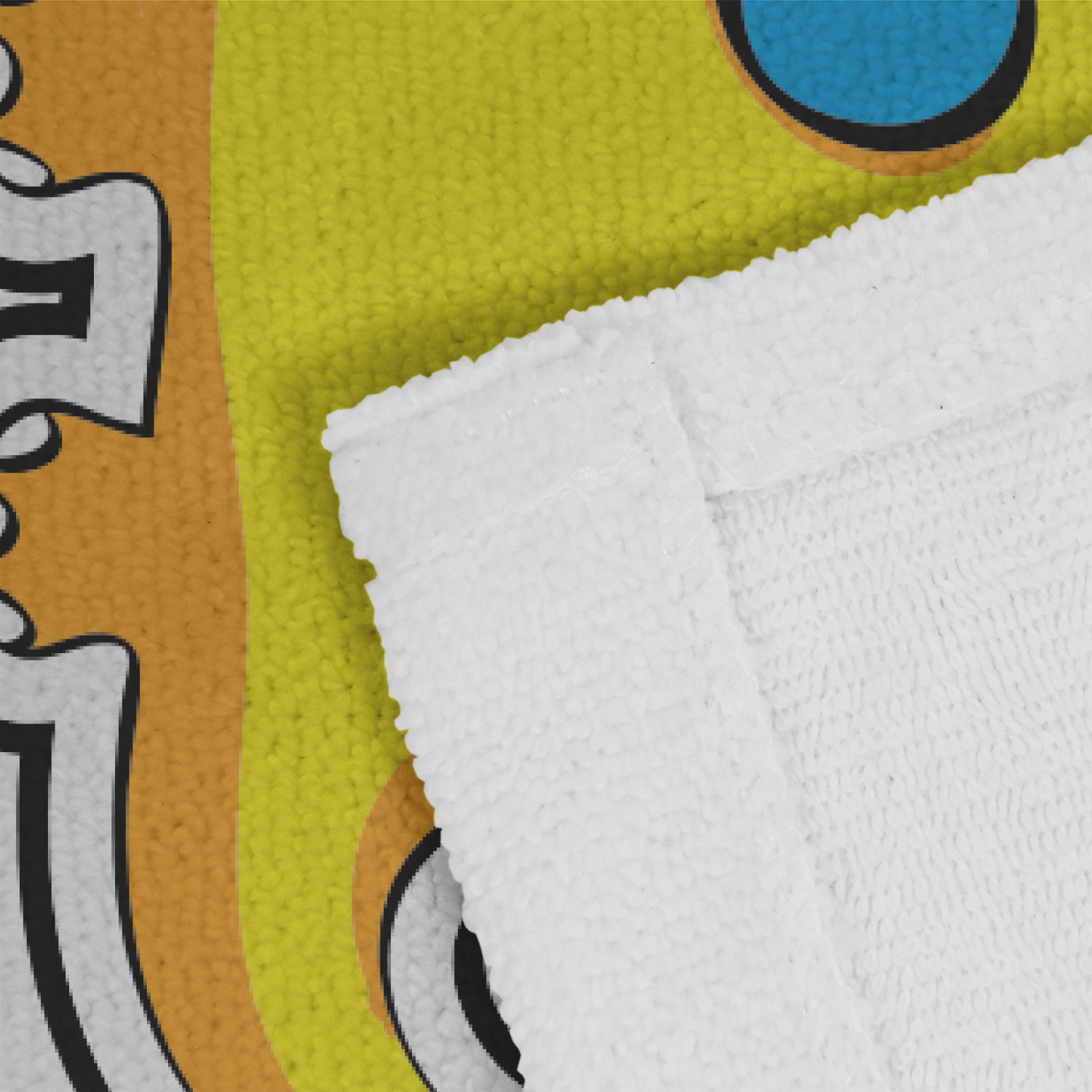 These terry loop towels are thick and plush. They may feel a little flat when you first receive them and this is because of sublimation printing - it presses down on the fibers - however, the towels will fluff up once washed & dried. Your design will be printed on the front side of the towel which is a polyester blend, while the back is 100% cotton and will be white.