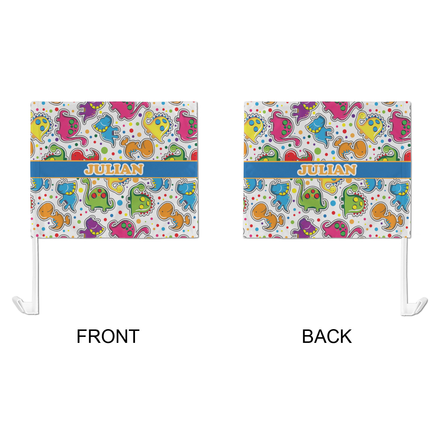 Our personalized flags are made from a durable, yet lightweight cloth that will proudly bear your logo or design of choice, while withstanding the outside elements. We have two size options - 8" x 11" and 11" x 15". Both come with a flag pole which includes a clip that secures the pole to the side window, whether it is rolled up or down. The flags are printed on both sides to display your design from all directions.