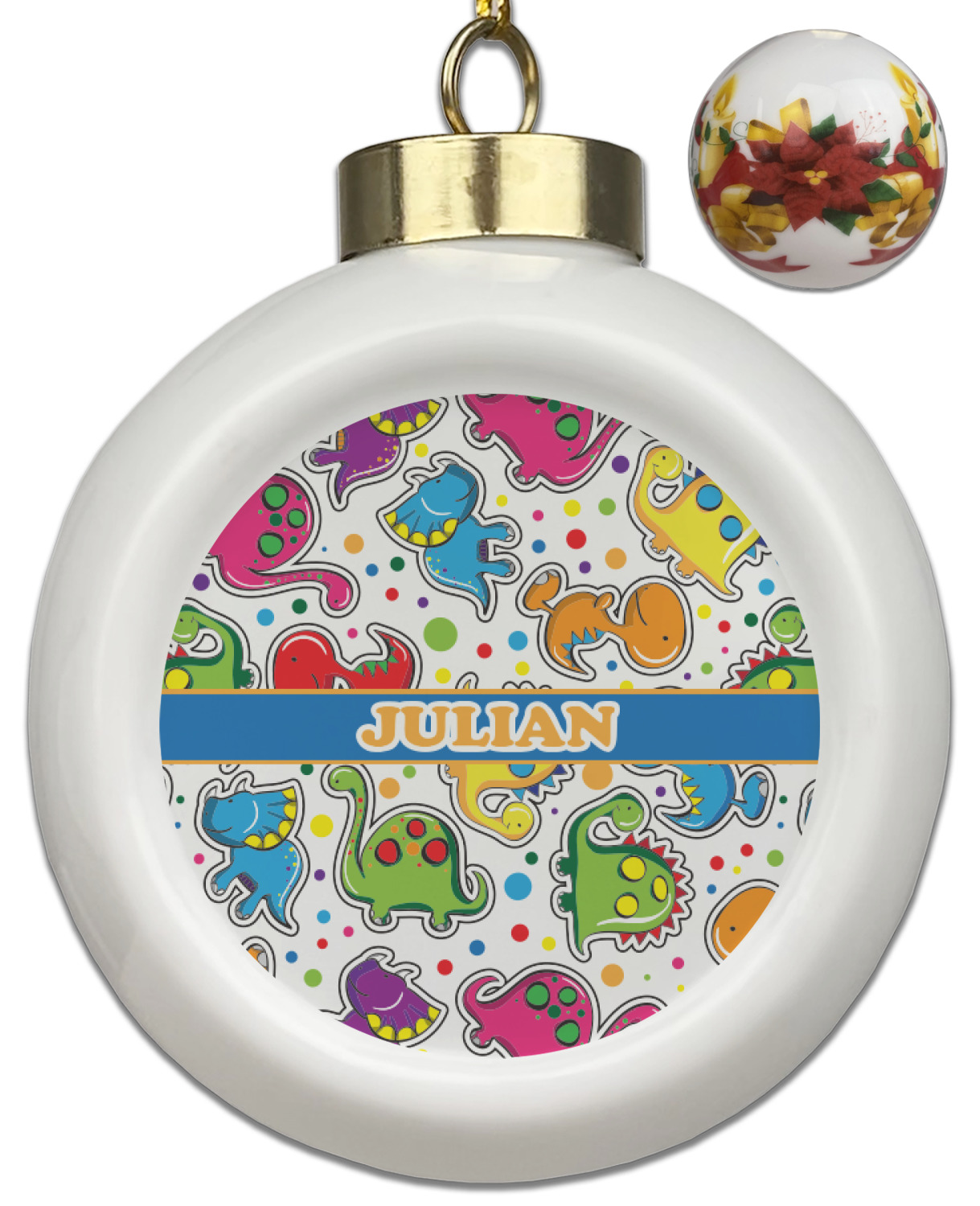 Our Christmas ornaments are a unique ceramic ball shape with a twist as it has a flat face to display your custom design! Select from one of our two design types - Christmas Tree or Poinsettia Garland - to adorn the curved back of your personal design. Each ornament measures 3H x 2.5W x 2D accompanied with a gold string accent for finishing touches to hang on your beautiful Christmas tree!