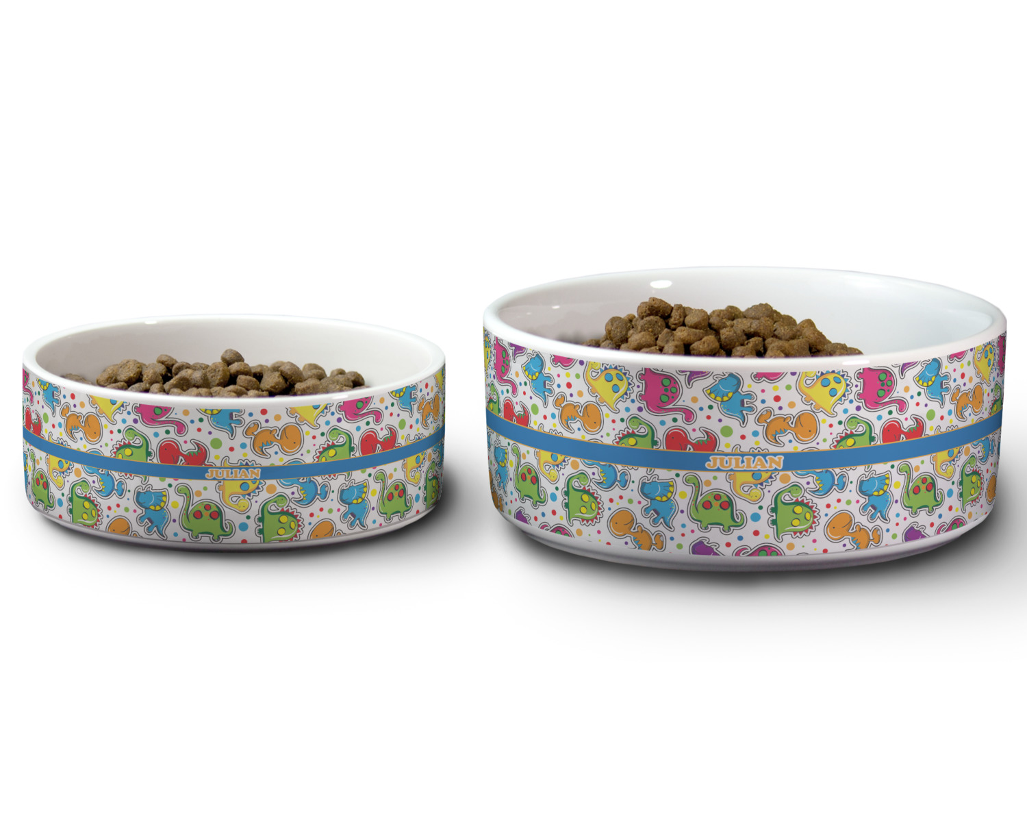 Our customized, ceramic dog bowls allow you to fashion a durable, yet expressive gift for your pet. These bowls are fashionably versatile; they suit both cats and dogs and can hold either food or water. Add your pet's name or favorite color to the design, and spruce up his/her eating area with one or two personalized pet bowls!
