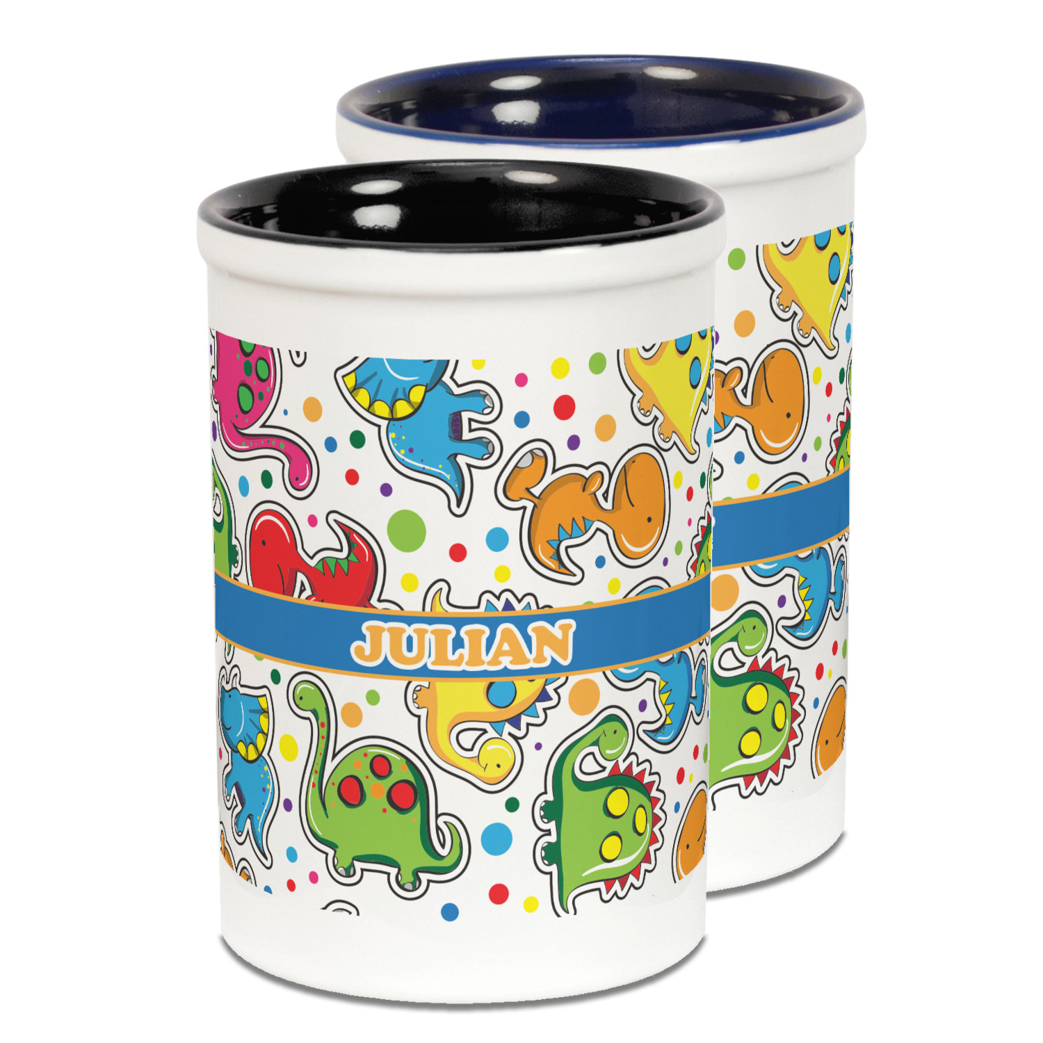 Colorful dinosaurs spring to life in this whimsical and comical versatile pattern. Set on a backdrop of multicolored polka dots these dinosaurs are sure to delight your little ones. Using bright colors of Blue, red, green, purple, yellow, and pink these dinosaurs are sure to stir up your little one's imagination in no time.