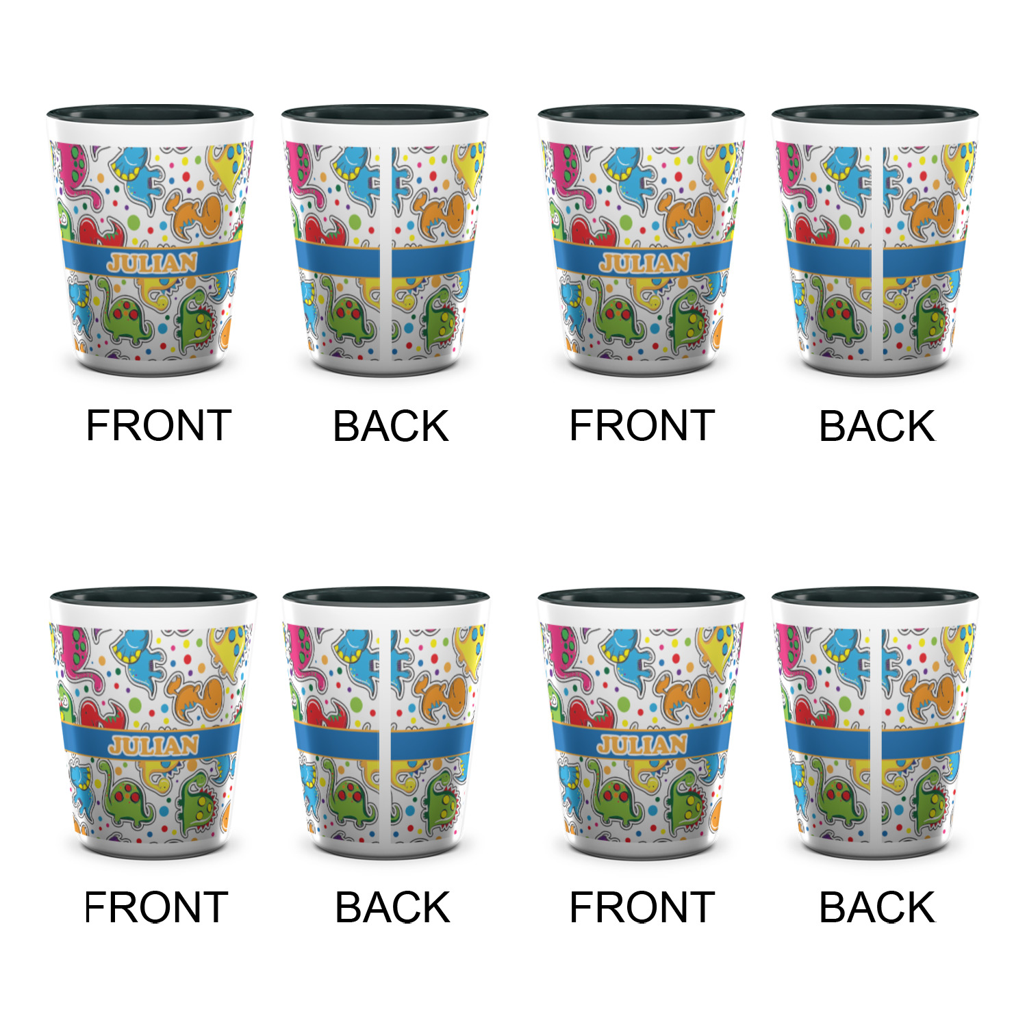 Made from ceramic these shot glasses are printed in full color with the design of your choice. These are a standard 1.5oz size and stand 2.25" tall. Available in a full white ceramic or a two-tone with a black color inside the shot glass. Buy a single or a set of 4, all of which can be designed separately to get you just what you want and need.