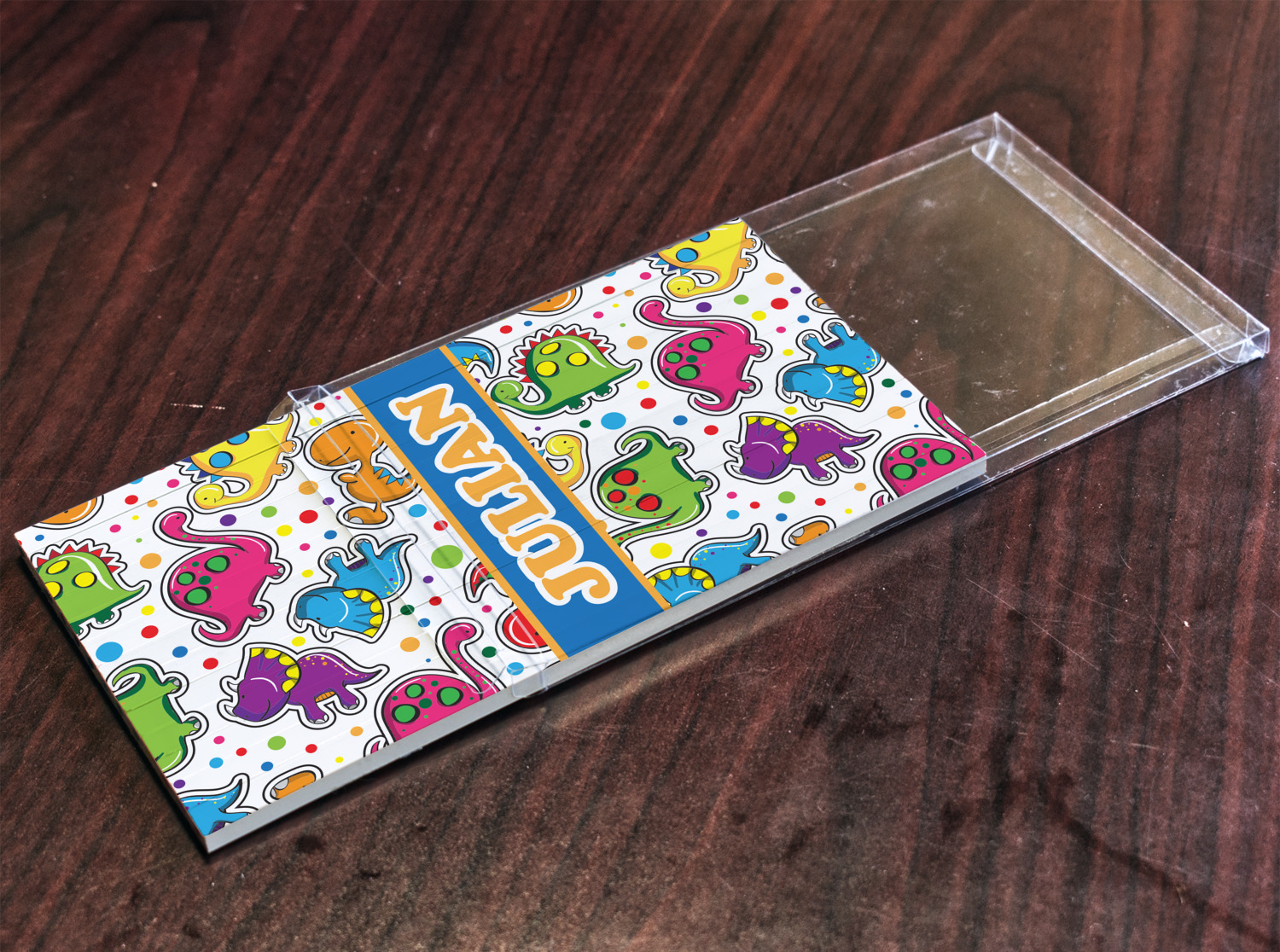 A blue band trimmed in coordinating orange is used to showcase the personalization of your choice.