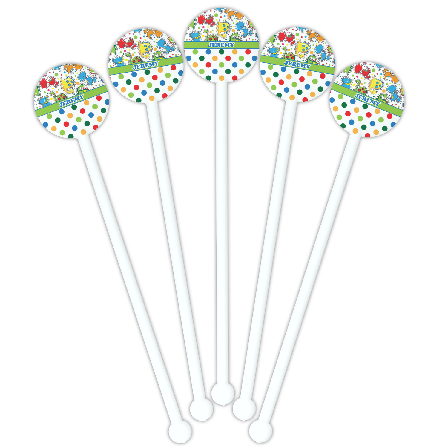 Shape + Symbol Designs for 5.5" Round Plastic Stir Sticks - White - Double-Sided