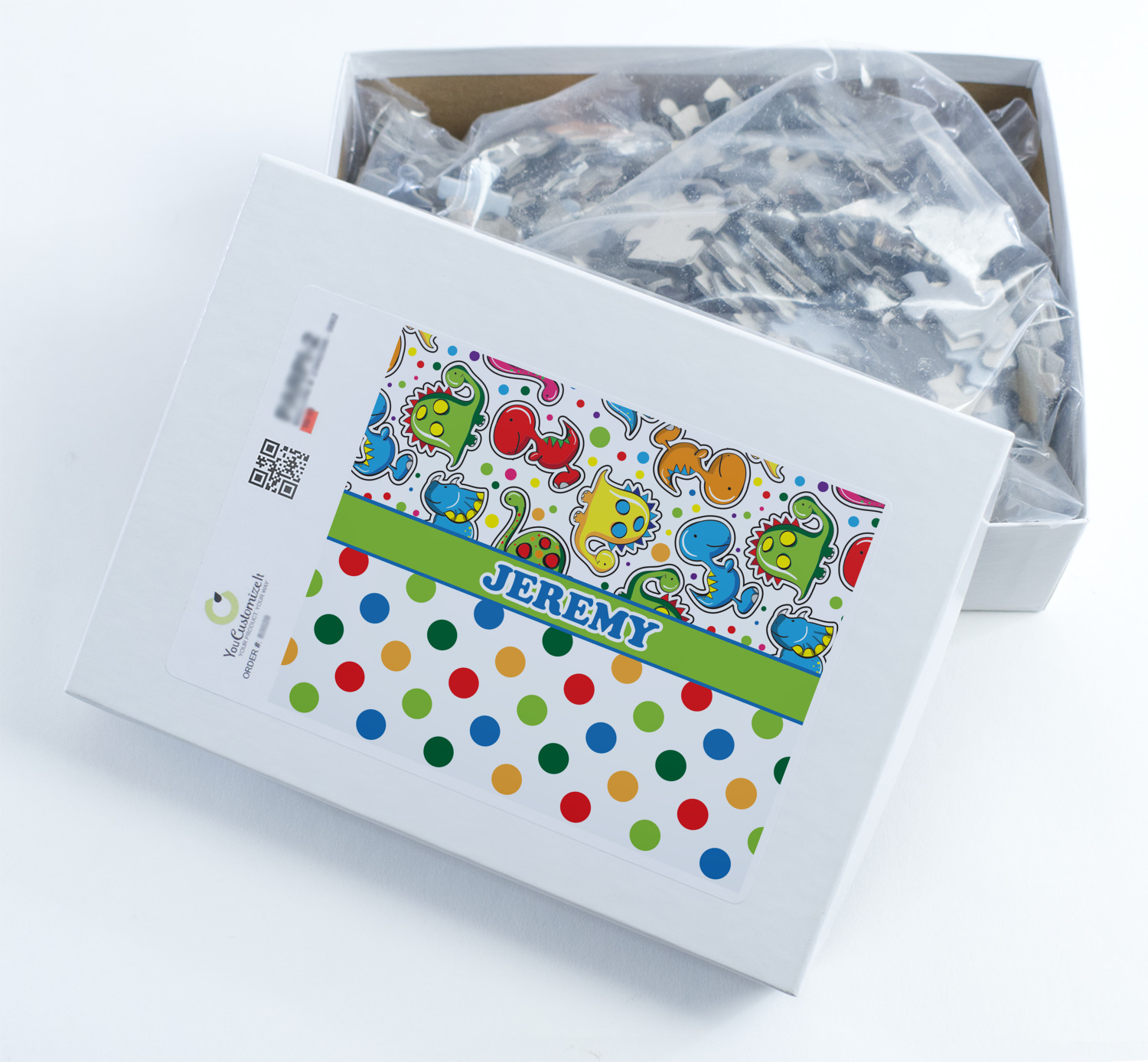 You can also upload your logo or art that you or your kids drew. To create more challenging jigsaw puzzles, you can create a pattern from with your logo or artwork. You can also add other elements such as text or personalization.