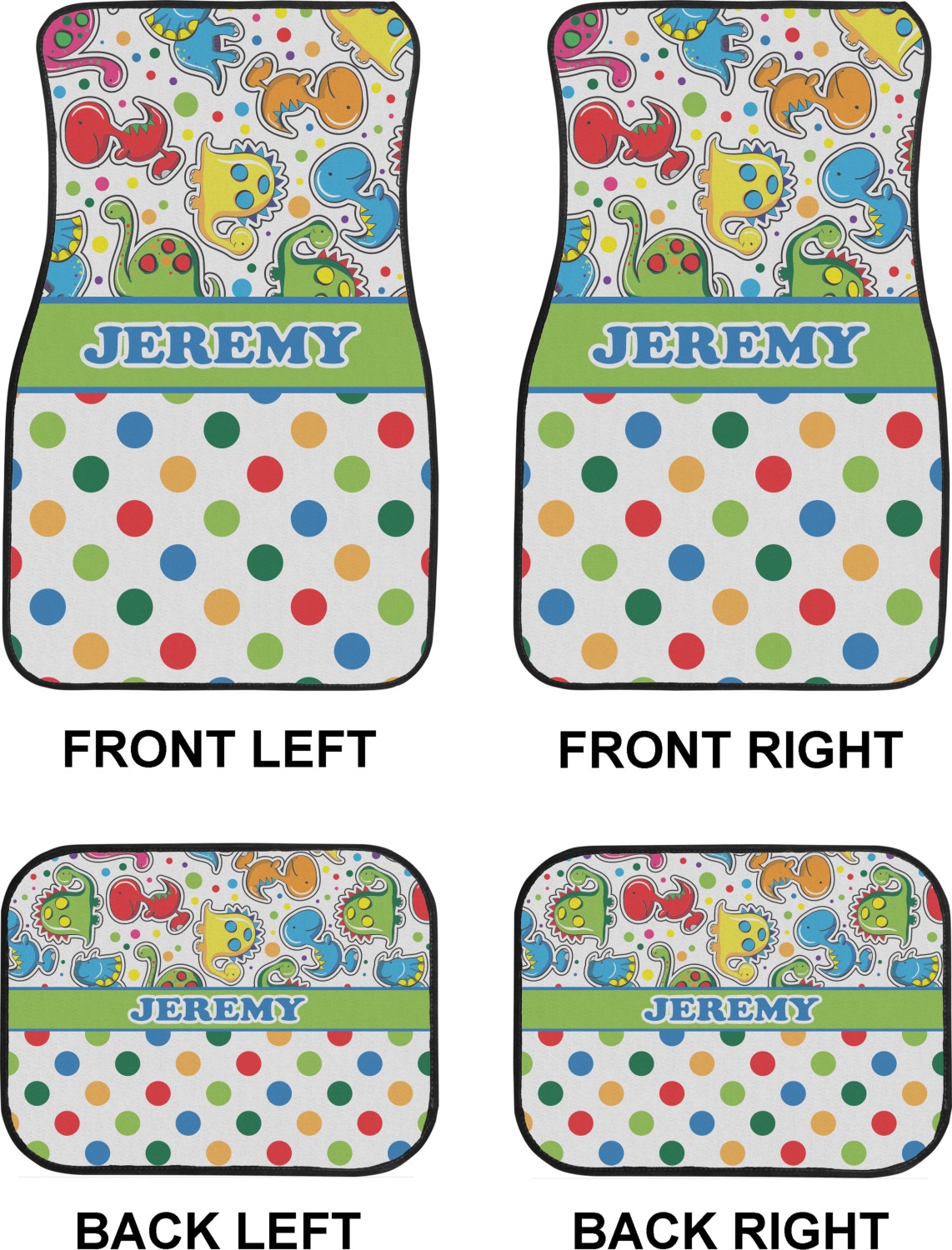 We craft our auto floor mats mats from polyester, apply a black finish to the edges, and lined at the bottom to prevent slippage. These mats protect your floors from grass, mud, and any accidental spills. We display your personalized design on the front face of each mat. The sizes of these car floor liners are standardized to provide a versatile fit for all vehicles. The front rows car mats measure at 17 by 26.5 inches, while the back rows measure at 17 by 13 inches. We sell three packages of car floor mats. You can purchase a pair of front row car mats, a pair of back row car mats, or a set of front row and back row car mats. To make an informed purchase, we recommend measuring the surface area of your car floors.