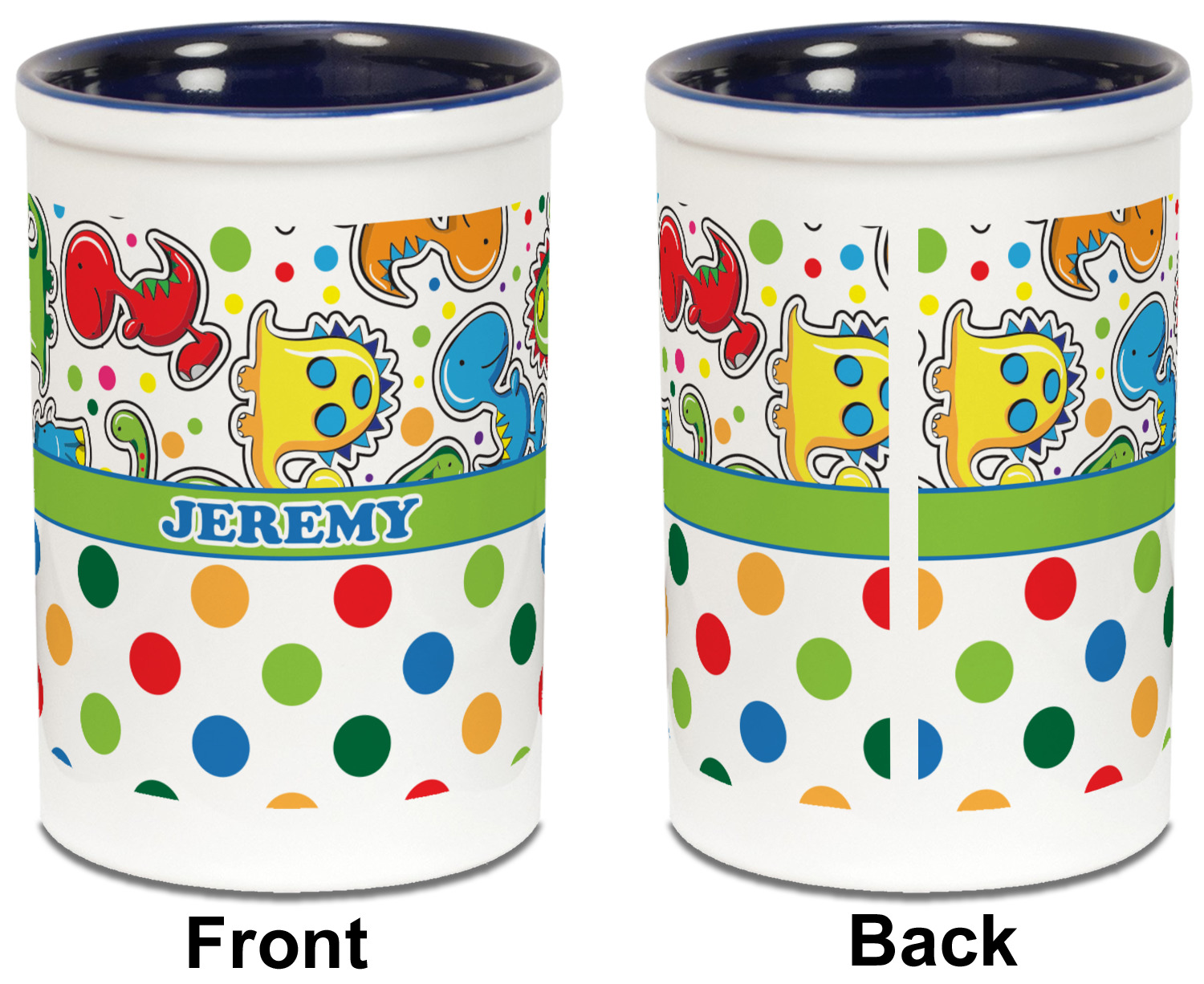 A lime green band trimmed in coordinating blue is used to showcase the personalization of your choice.