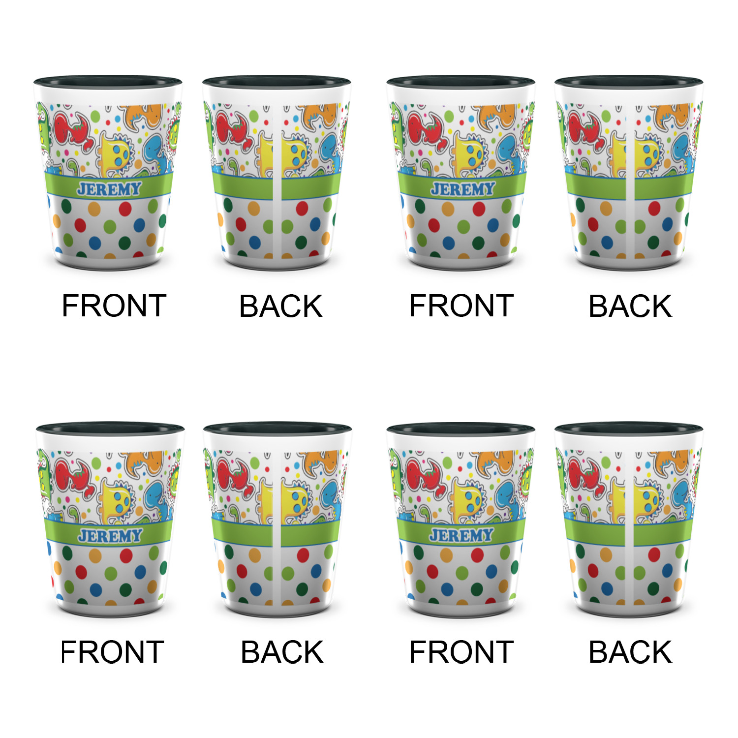 Made from ceramic these shot glasses are printed in full color with the design of your choice. These are a standard 1.5oz size and stand 2.25" tall. Available in a full white ceramic or a two-tone with a black color inside the shot glass. Buy a single or a set of 4, all of which can be designed separately to get you just what you want and need.