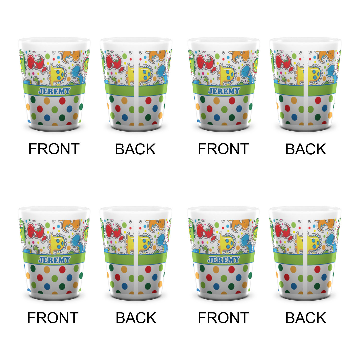 Made from ceramic these shot glasses are printed in full color with the design of your choice. These are a standard 1.5oz size and stand 2.25" tall. Available in a full white ceramic or a two-tone with a black color inside the shot glass. Buy a single or a set of 4, all of which can be designed separately to get you just what you want and need.