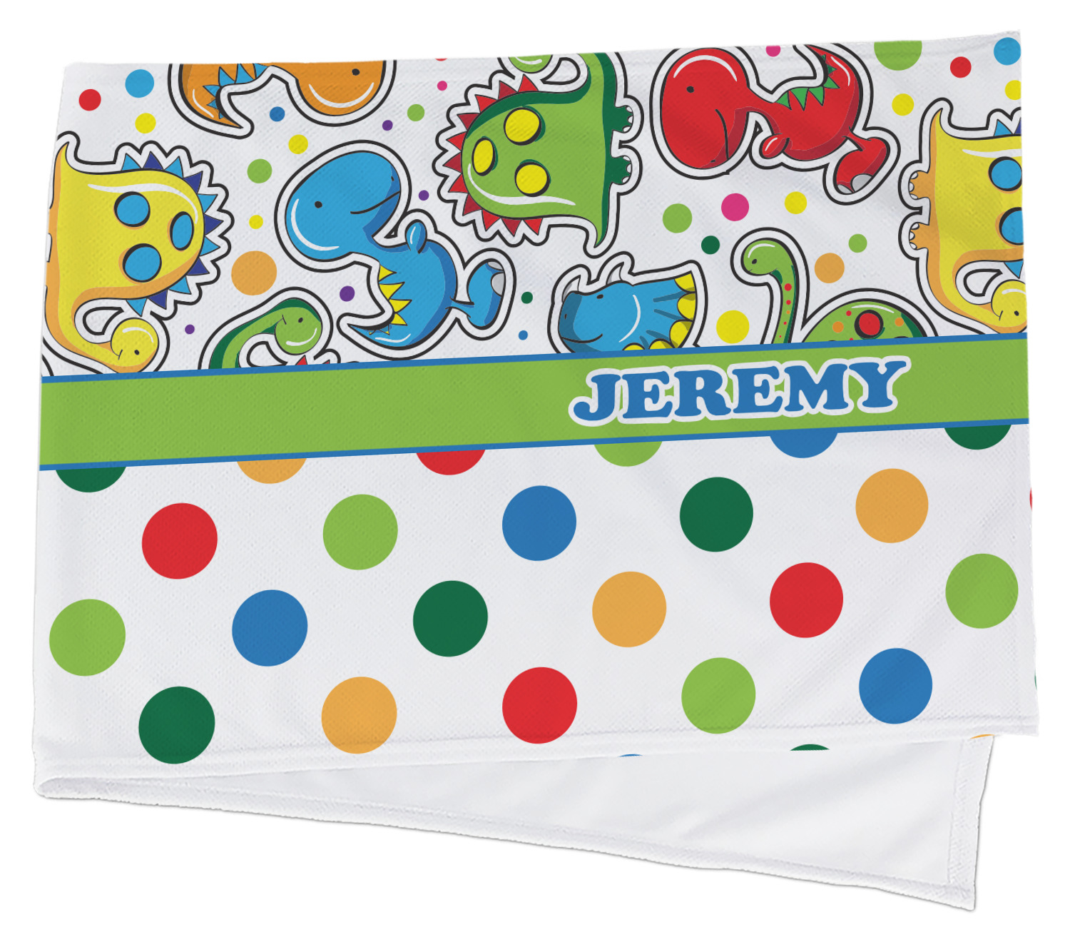 A lime green band trimmed in coordinating blue is used to showcase the personalization of your choice.