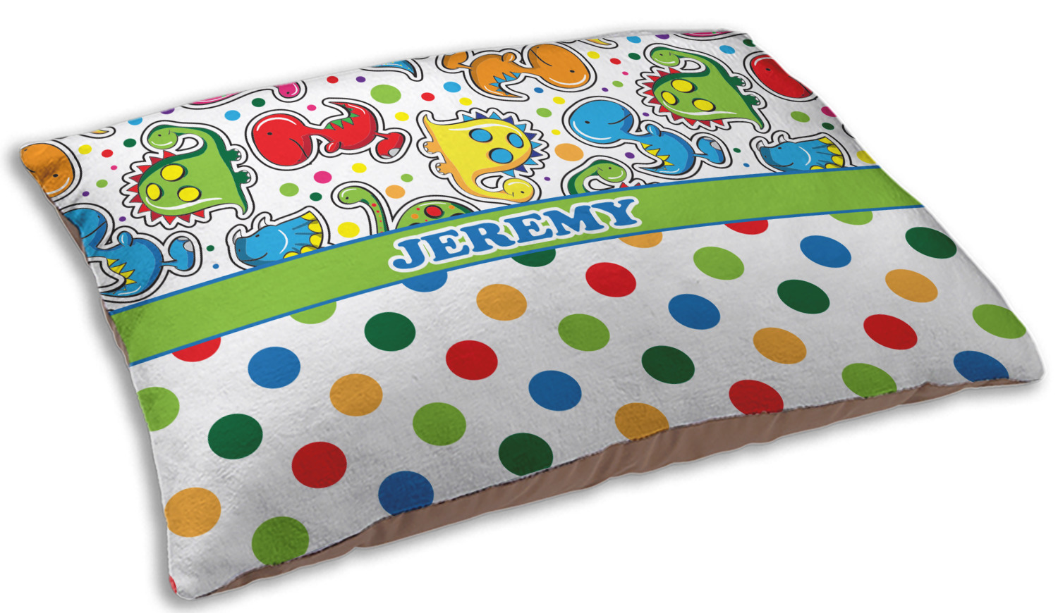 Colorful dinosaurs spring to life in this whimsical and comical versatile pattern. Set on a backdrop of multicolored polka dots these dinosaurs are sure to delight your little ones. Using bright colors of Blue, red, green, purple, yellow, and pink these dinosaurs are sure to stir up your little one's imagination in no time. The bottom of the design uses the same polka dot pattern, they just grew a little bigger.