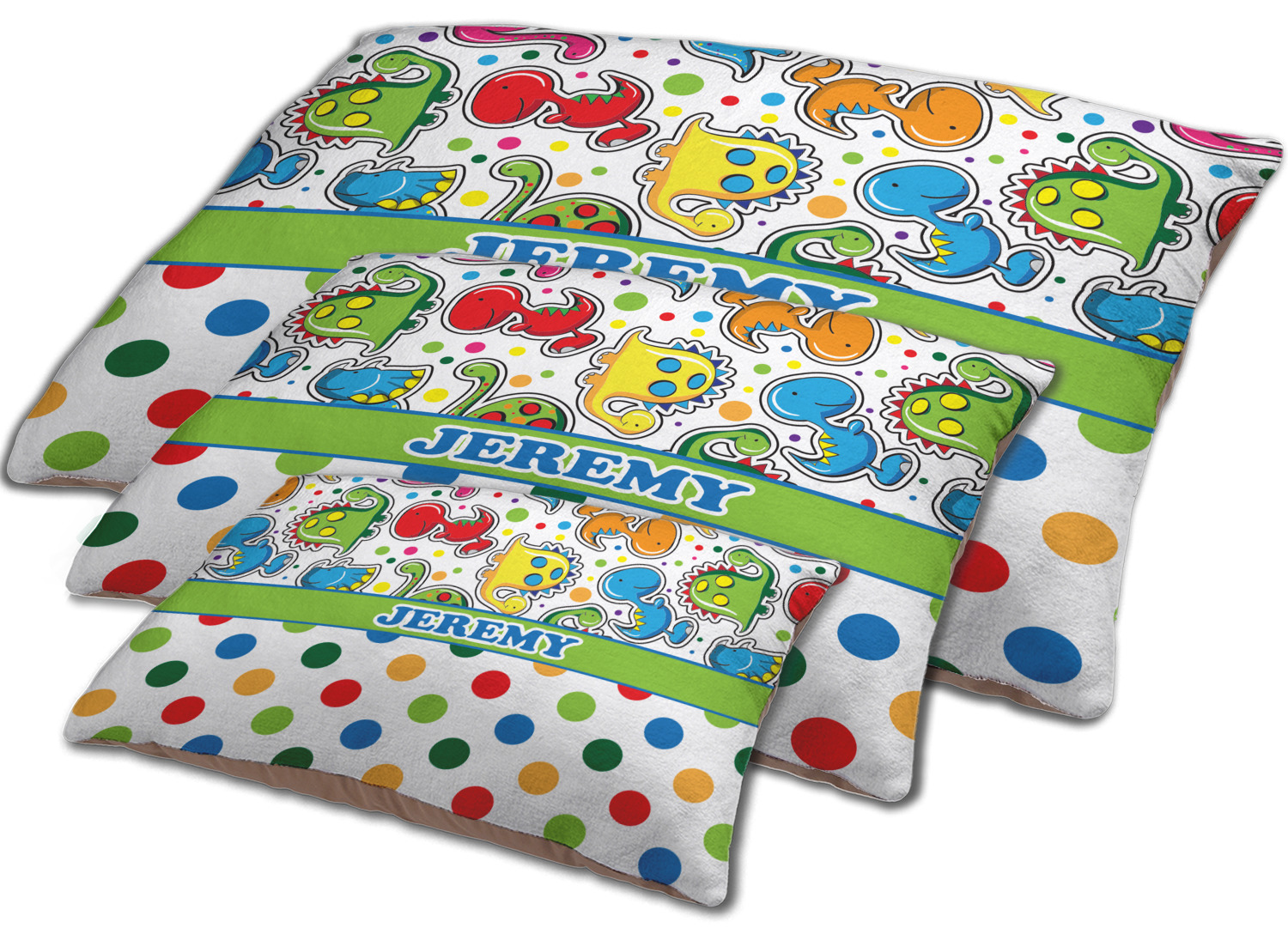 Colorful dinosaurs spring to life in this whimsical and comical versatile pattern. Set on a backdrop of multicolored polka dots these dinosaurs are sure to delight your little ones. Using bright colors of Blue, red, green, purple, yellow, and pink these dinosaurs are sure to stir up your little one's imagination in no time. The bottom of the design uses the same polka dot pattern, they just grew a little bigger.