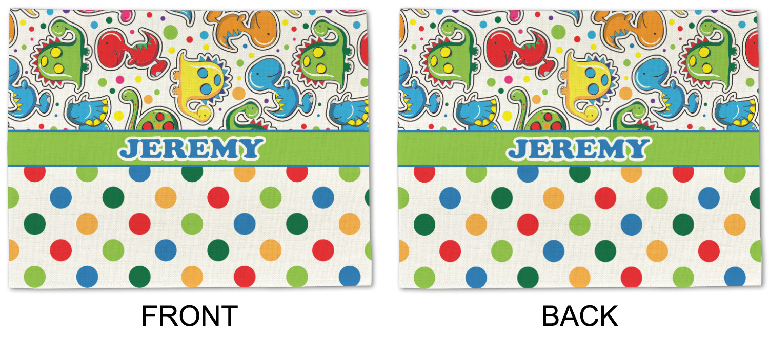 Colorful dinosaurs spring to life in this whimsical and comical versatile pattern. Set on a backdrop of multicolored polka dots these dinosaurs are sure to delight your little ones. Using bright colors of Blue, red, green, purple, yellow, and pink these dinosaurs are sure to stir up your little one's imagination in no time. The bottom of the design uses the same polka dot pattern, they just grew a little bigger.