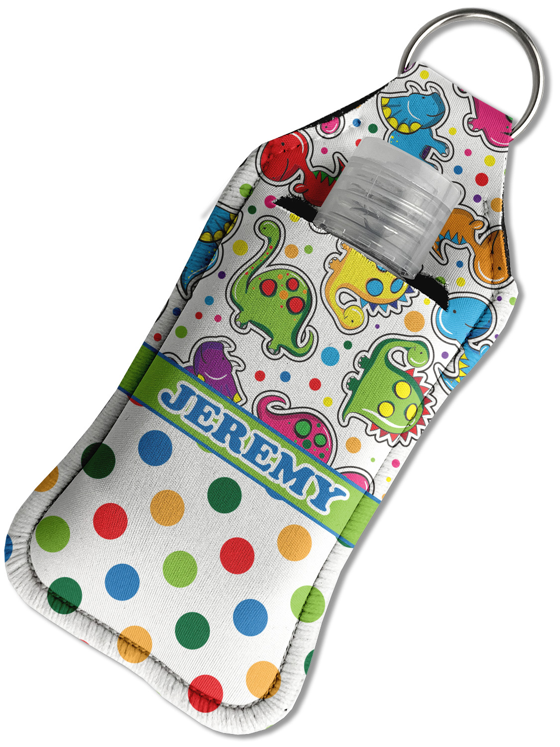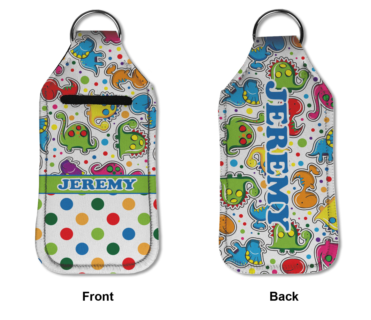 Each hand sanitizer holder comes with its own empty travel-sized, refillable hand sanitizer sure to fit snug in your customized sanitizer case! Our hand sanitizer cases are a durable, yet soft neoprene material sure to last any daily activities or travel agenda. Customize and personalize a hand sanitizer bottle holder with one of our two sizes - small (4.25" x 2.25") or large (5.5" x 2.5"). Each travel sanitizer holder comes with a keyring for attachment on bags, keys, or more!