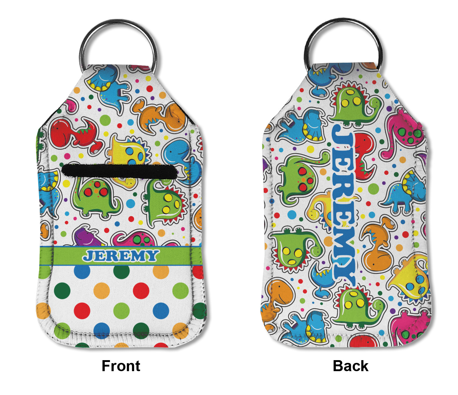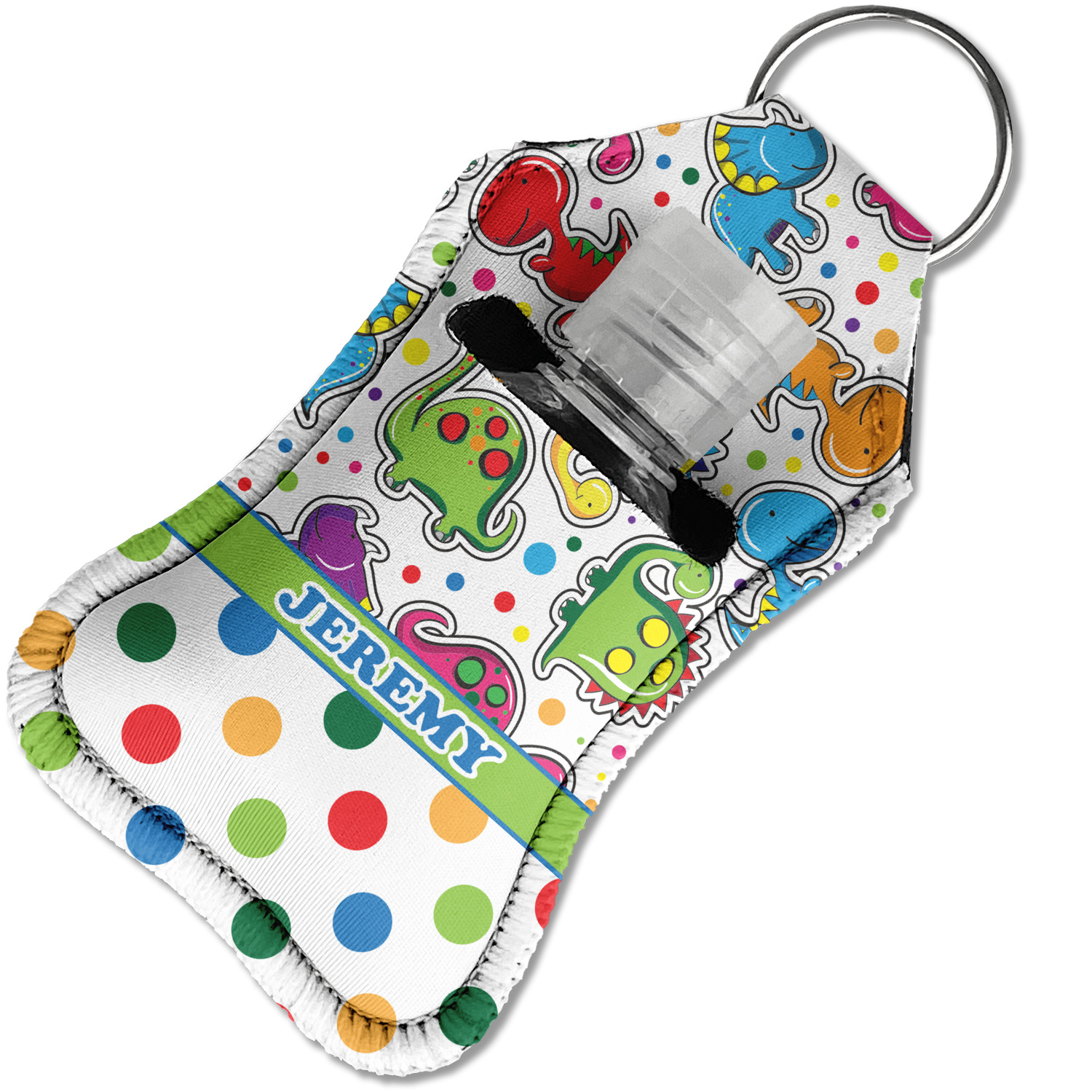 Each hand sanitizer holder comes with its own empty travel-sized, refillable hand sanitizer sure to fit snug in your customized sanitizer case! Our hand sanitizer cases are a durable, yet soft neoprene material sure to last any daily activities or travel agenda. Customize and personalize a hand sanitizer bottle holder with one of our two sizes - small (4.25" x 2.25") or large (5.5" x 2.5"). Each travel sanitizer holder comes with a keyring for attachment on bags, keys, or more!