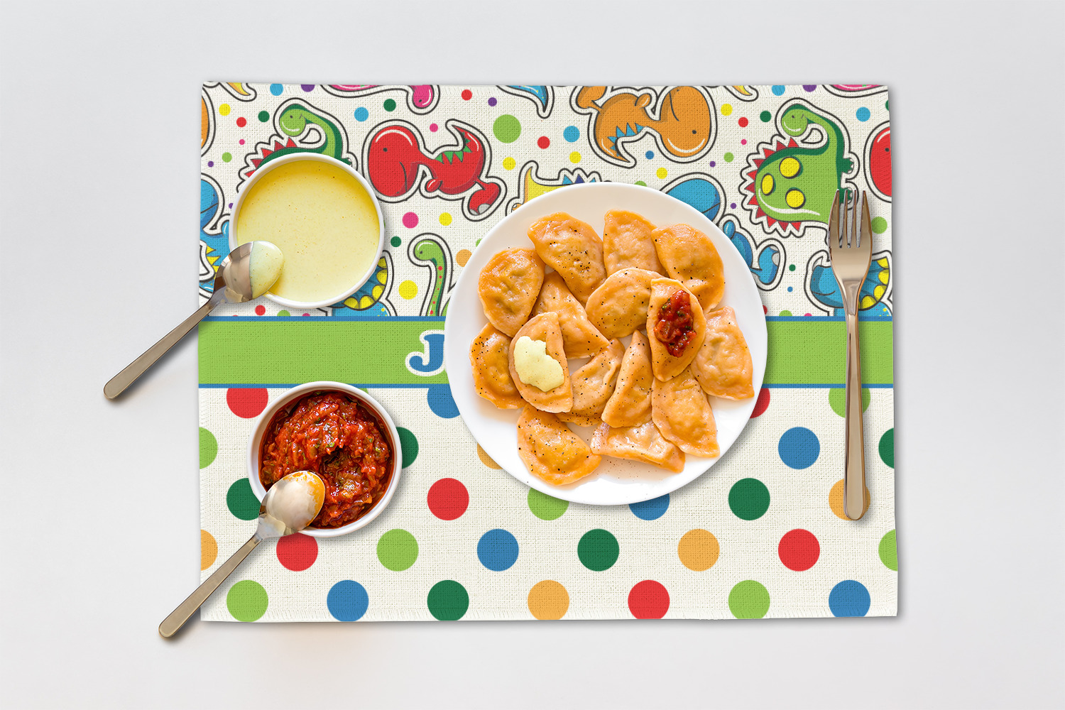 Colorful dinosaurs spring to life in this whimsical and comical versatile pattern. Set on a backdrop of multicolored polka dots these dinosaurs are sure to delight your little ones. Using bright colors of Blue, red, green, purple, yellow, and pink these dinosaurs are sure to stir up your little one's imagination in no time. The bottom of the design uses the same polka dot pattern, they just grew a little bigger.