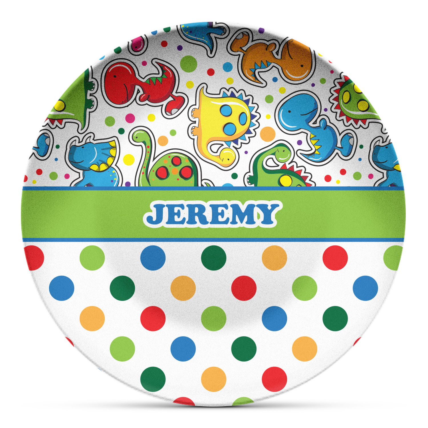These plastic plates have the versatility, durability, and weight of melamine plates but are instead are made from a melamine-free composite, thermo-set, polymer plastic. These plates are made right here, in the USA, without the use of harmful chemicals, such as BPAs, formaldehyde, or DEHPs. Our elegant plastic plates can even withstand temperatures of up to 250 degrees Fahrenheit, for up to 60 minutes. The entire face of the plate exhibits your personalization in bright, vibrant color, and the plate's diameter measures at 10" long.