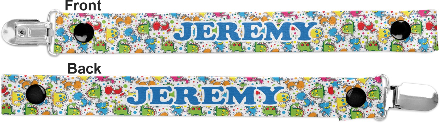 This personalized pacifier clip is the ideal size and measures at approximately 7.5 inches in length, when either end is snapped closed. On one end, you'll find a snap button. This button of your baby's pacifier holder is what can be attached to their pacifier to hold is securely in place. Simply open the snap, slip it through the pacifier opening, and snap it back into place. On the opposite end of this baby pacifier holder, you'll find a metal clip that can secure to a baby's collar or sleeve. This clip ensures that the strap stays in place, and that your baby's pacifier is always on hand.