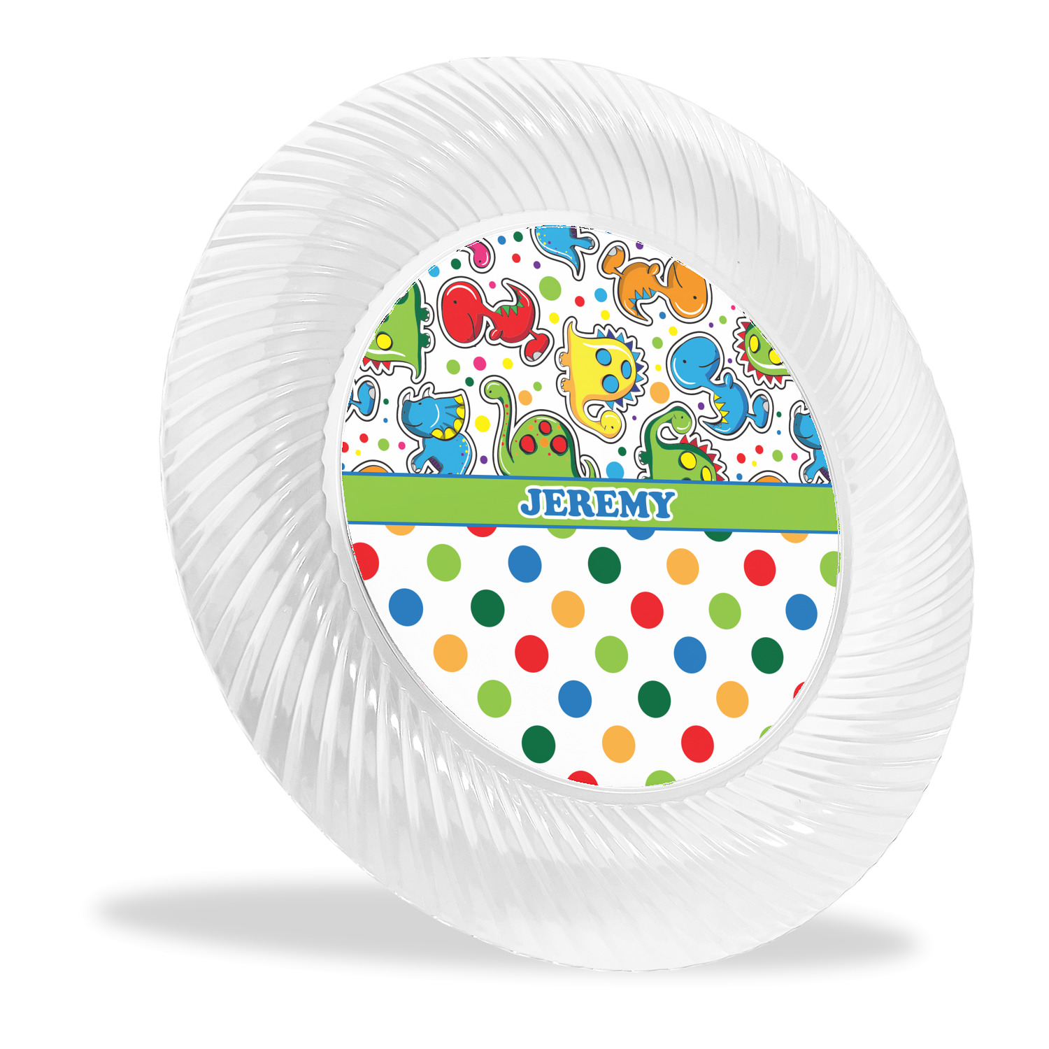 Made from a beautiful clear plastic plate as a base, your design is printed to the underside of the plate. The outside of these disposable plates has a classic swirl texture to it for a high quality look and feel.