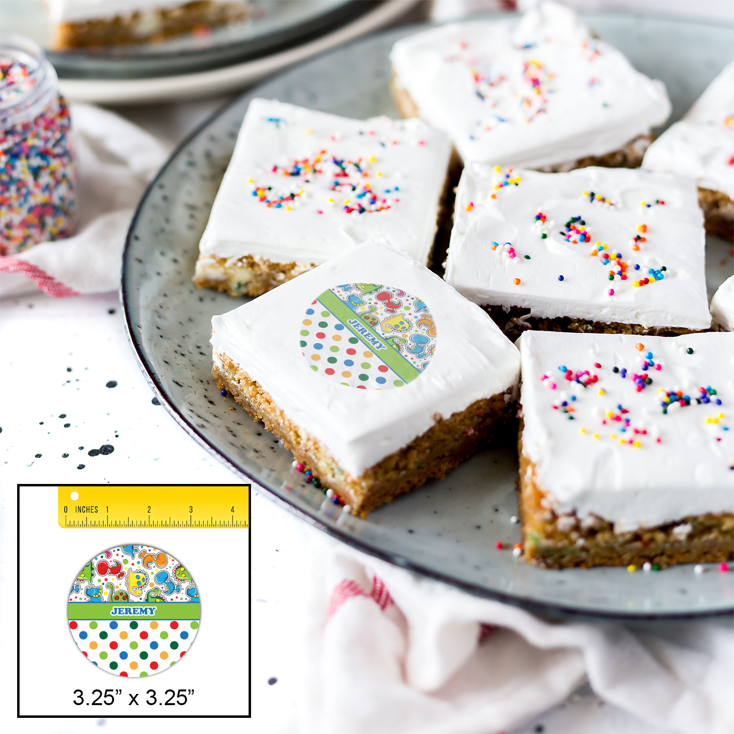 Your customized cookie toppers can be placed on top of any dessert with an icing top.The icing helps adhere the cookie topper to the dessert.