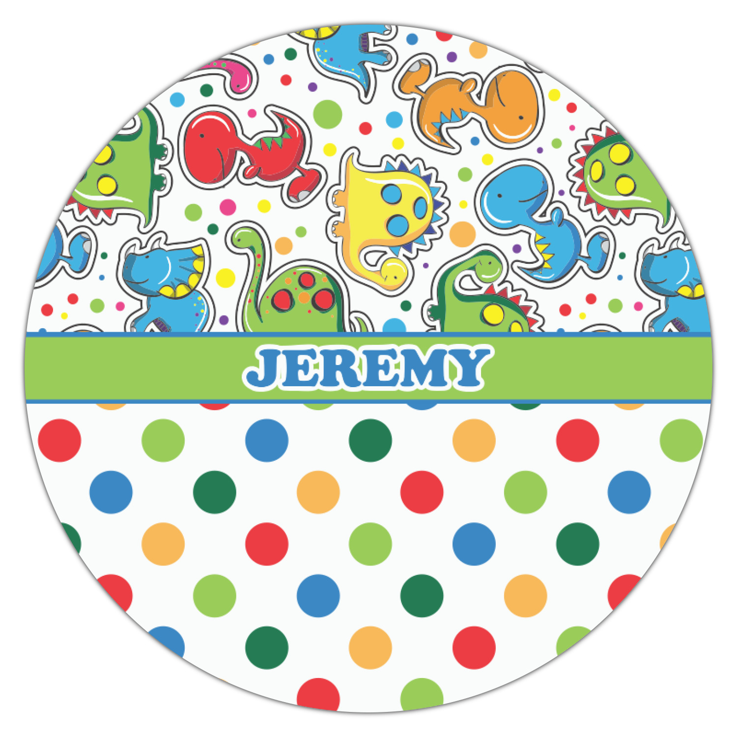 Colorful dinosaurs spring to life in this whimsical and comical versatile pattern. Set on a backdrop of multicolored polka dots these dinosaurs are sure to delight your little ones. Using bright colors of Blue, red, green, purple, yellow, and pink these dinosaurs are sure to stir up your little one's imagination in no time. The bottom of the design uses the same polka dot pattern, they just grew a little bigger.