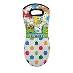 A lime green band trimmed in coordinating blue is used to showcase the personalization of your choice.