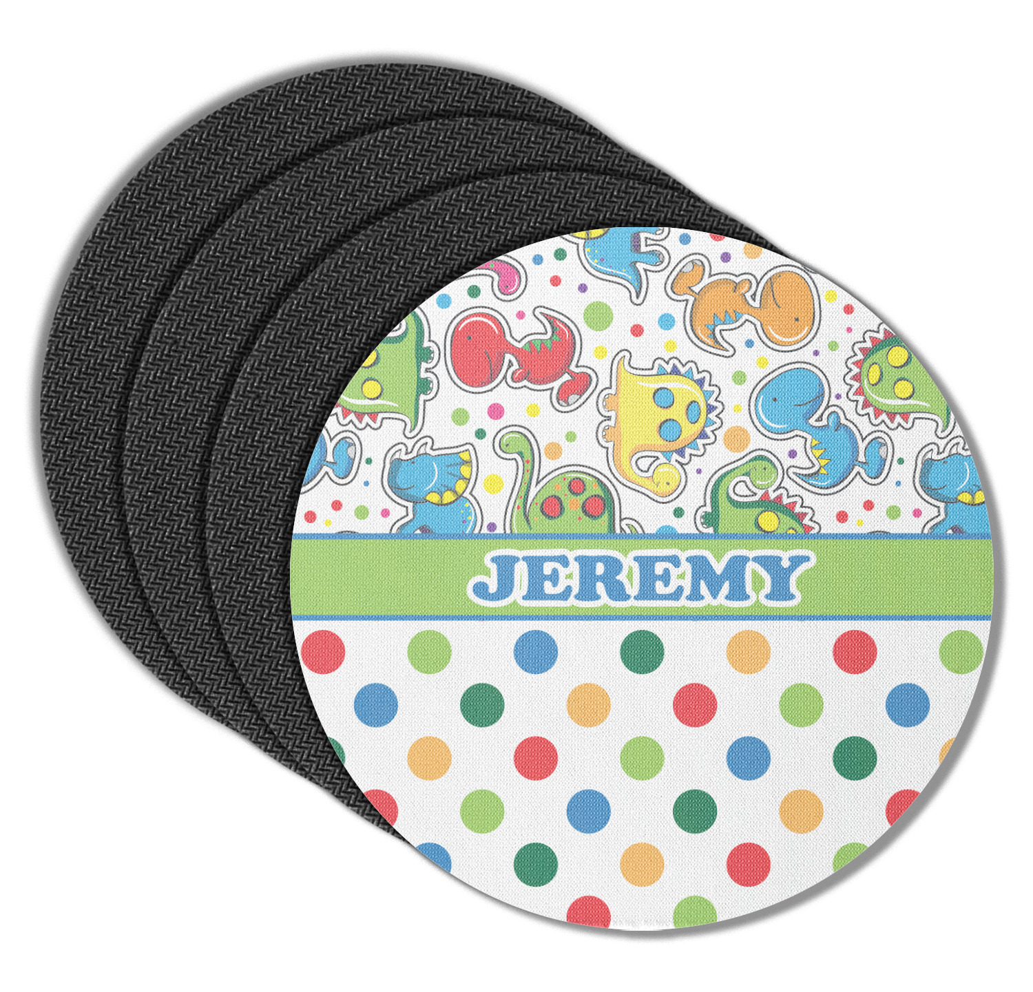 These drink coasters have a smooth, polyester top and a textured, rubber backing on its bottom. The non-slip rubber backing underneath works to keep any spills at bay. At 4 by 4 by 0.25 inches thick, these custom coasters are a suitable size for most drinkware. Your personalization is displayed atop the face of the cup coaster. We sell these rubber coasters in two different shapes: square and round. You can buy each shape as singulars or as a set of 4.