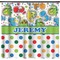 Colorful dinosaurs spring to life in this whimsical and comical versatile pattern. Set on a backdrop of multicolored polka dots these dinosaurs are sure to delight your little ones. Using bright colors of Blue, red, green, purple, yellow, and pink these dinosaurs are sure to stir up your little one's imagination in no time. The bottom of the design uses the same polka dot pattern, they just grew a little bigger.