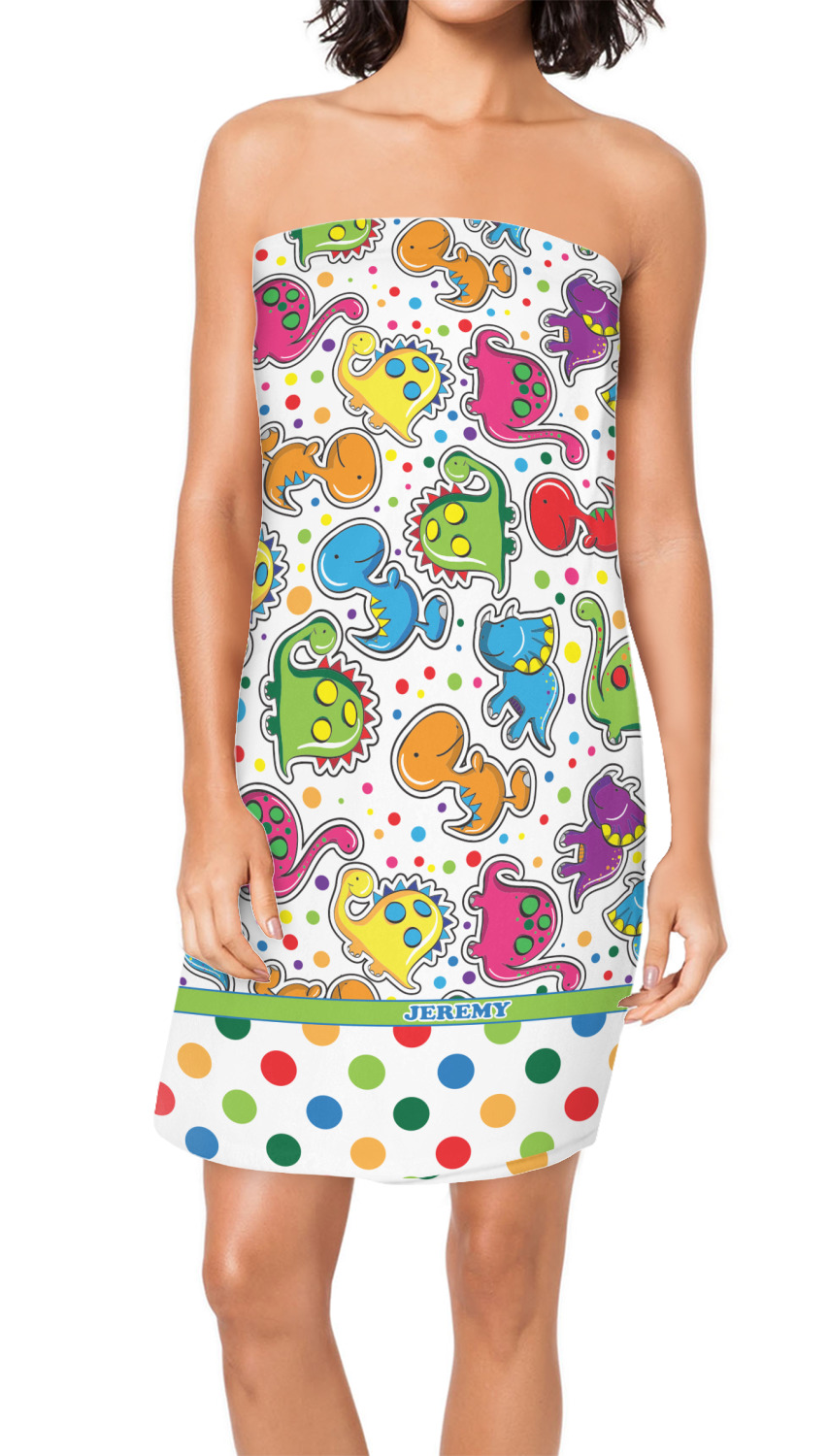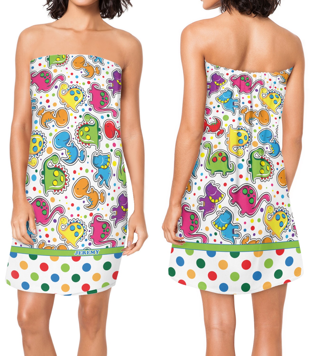 Made from a plush, fleece fabric, these luxurious towel wraps are comfortable and absorbent. They are printed, cut, and sewn for you, right here in the USA, after you place your order. These personalized bath wraps measure at approximately 59 by 32 inches, and display your customization across the outside.