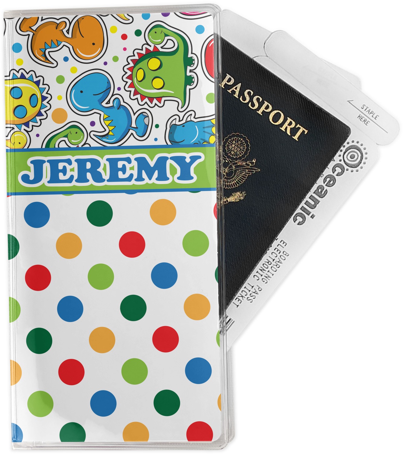 This document holder is really sturdy and has your personalized design inserted right behind all of your nifty pockets, so you can see it on the front and back covers. There are two large pockets and two shorter pockets inside. The larger pockets are tall enough to keep your boarding pass nice and straight. The smaller pockets (on top of the large pockets) are large enough to fit your passport, credit card, or ID.
