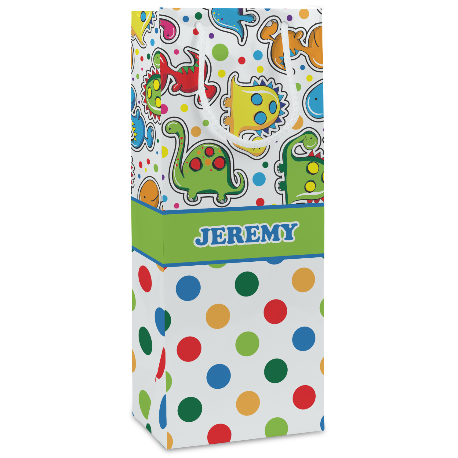 Our wine bags are printed on premium paper. The bags are then cut, scored and folded. The handles and cardstock base it attached. These custom wine bags are printed and made in the USA.