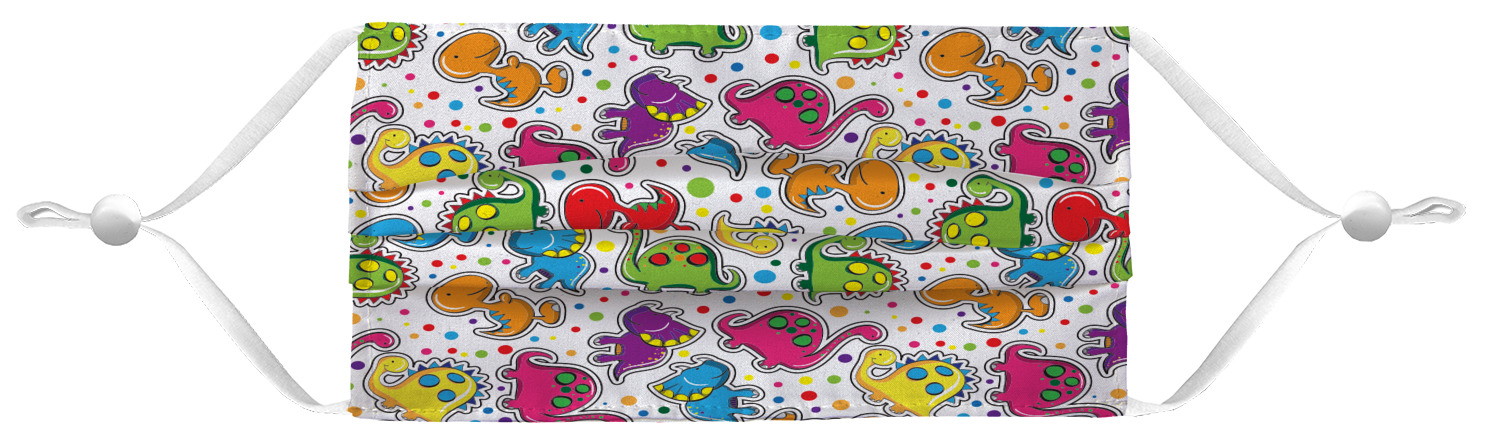 These fun face masks are 7" wide and 3.5" high. They feature pleats, adjustable ear loops, and are made with two layers of fabric. The top layer where your design is printed is a breathable polyester sheeting, while the inside layer is a soft microfiber polyester