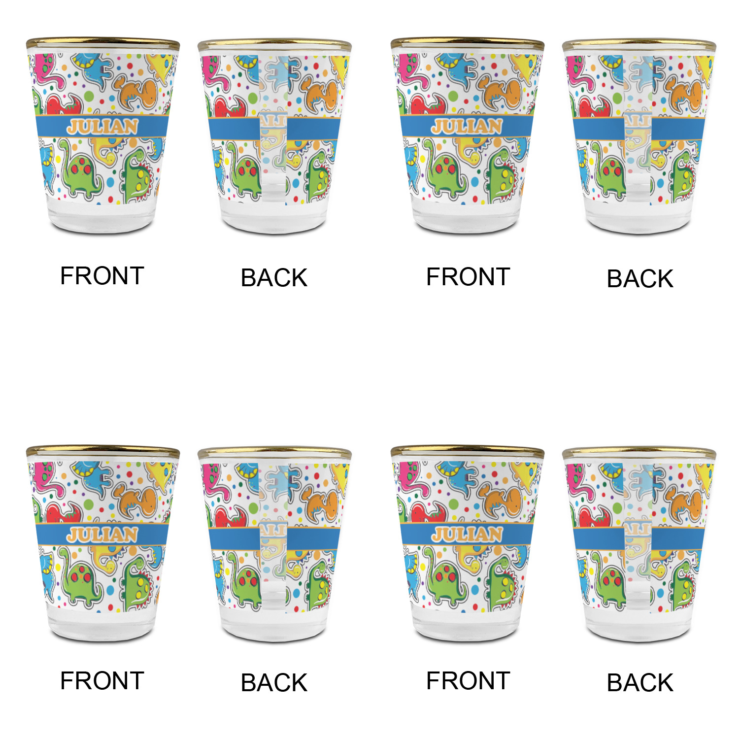 Made with frosted glass, these shot glasses are printed in full color with the design of your choice. They are a standard 1.5oz shot glass and are 2.4" tall. The print is wrapped around the shot glass in a full wrap and boldly displays your customization.